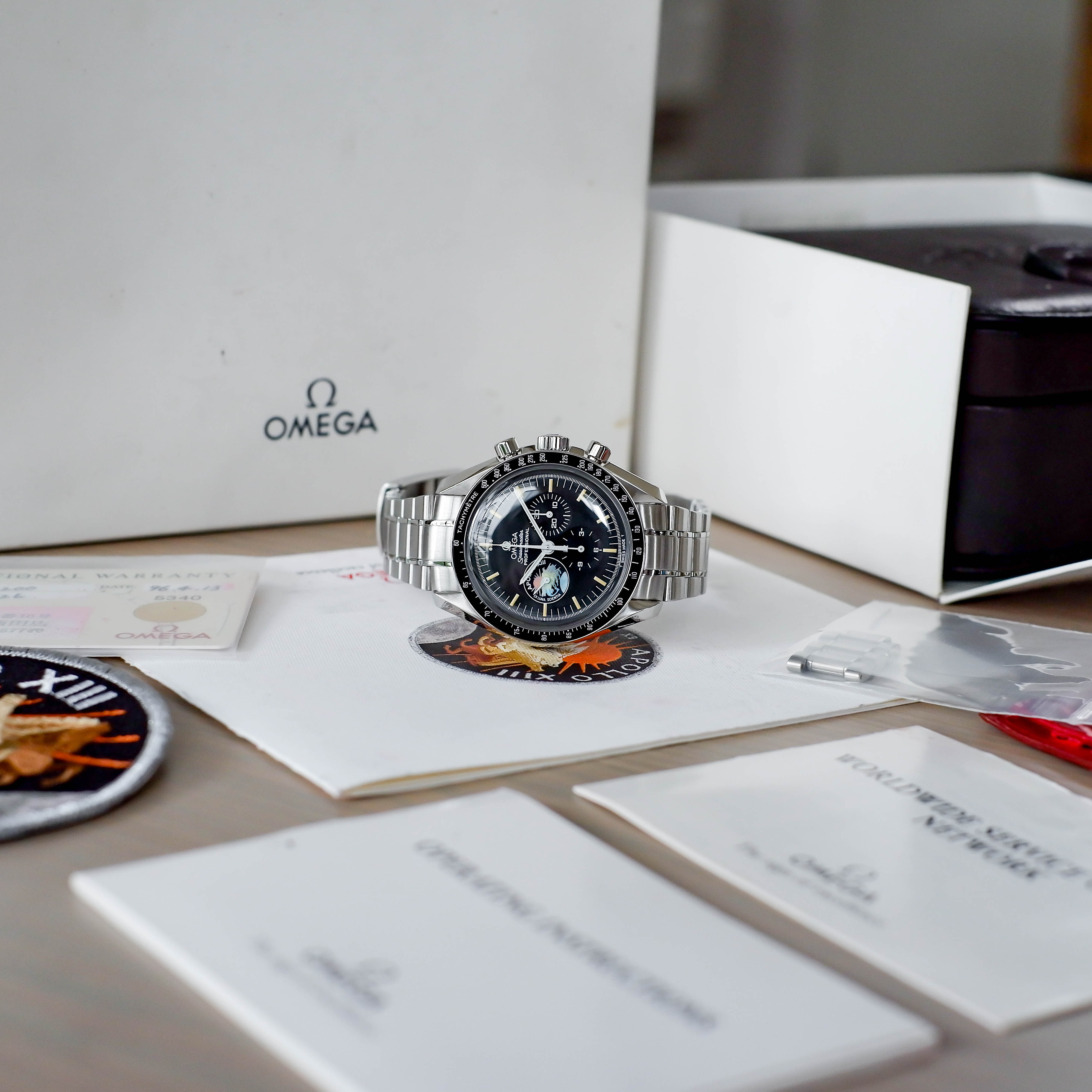 ซื้อ-ขายนาฬิกามือสอง ของแท้เท่านั้น / ขาย/เทรด Omega Speedmaster Apollo13 25th Anniversary Limited Edition Fullset หาย