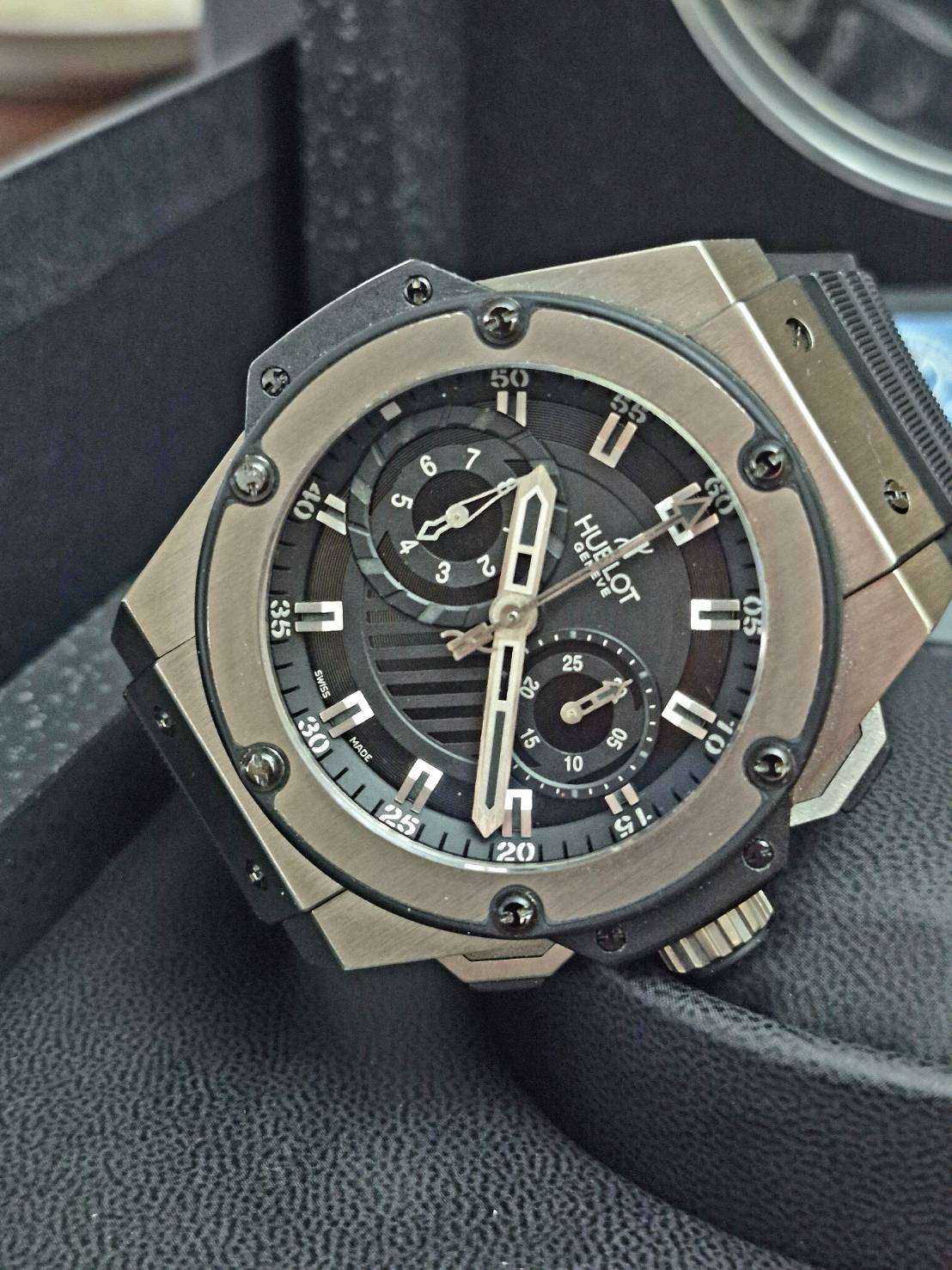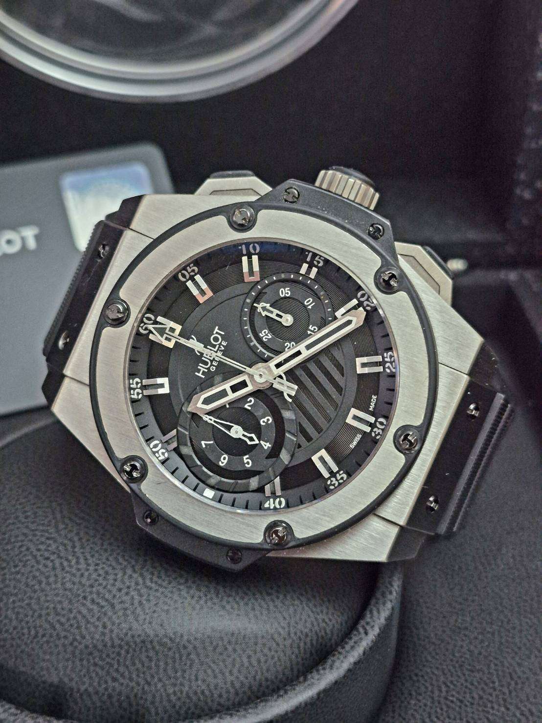 ⌚Hublot Bigbang King Power Foudroyante Zirconium Limited edition 500 เรือนทั่วโลก ตัวเรือนผลิตจาก Zirconium ขนาด 48mm เบามากๆแต่แข็งแกร่งขั้นสุด กลไก Automatic Chronograph จัยเวลาเสี้ยววินาทีฯ สภาพสวยงามมากพร้อมกล่อง,การ์ด, USB ครบๆ ราคามือสองต่างประเทศหลายแสน