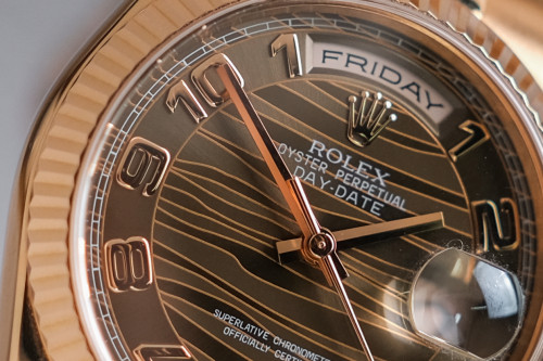 Rolex Day-Date Full 18K Everose Gold Wave Dial 118235