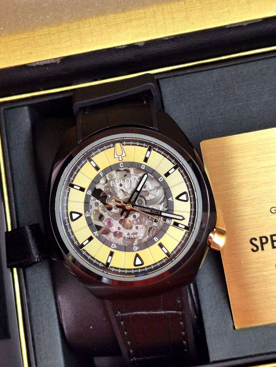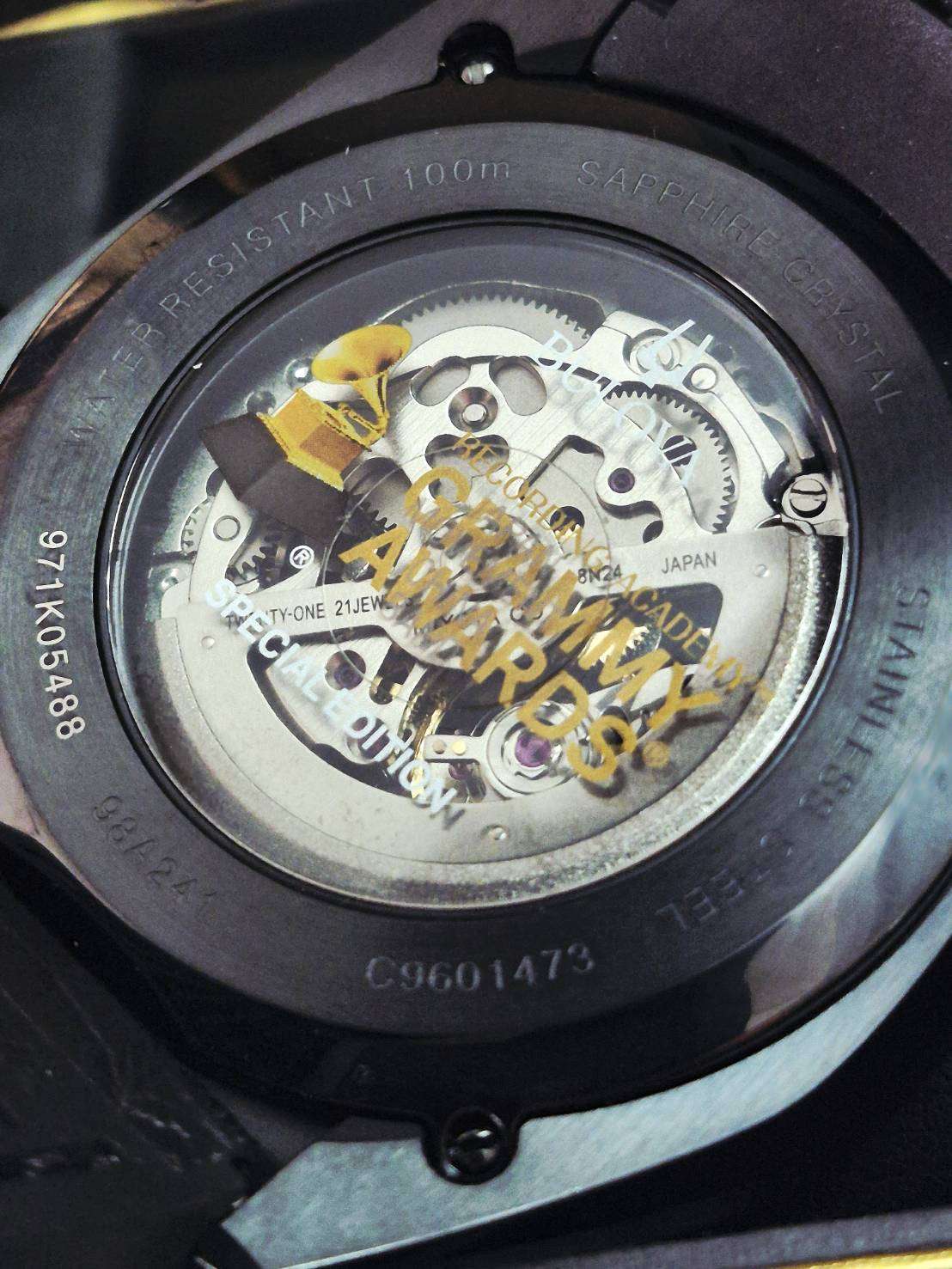 ⌚Bulova Special Edition Grammy Awards, Black/Gold Automatic Skeleton หน้า/หลังเปลือย ขนาด 43 mm สภาพใหม่มากไร้ริ้วรอย กล่องนอก, ใน, ใบฯ2024 ครบๆ ผลิตจำนวนจำกัดหายาก