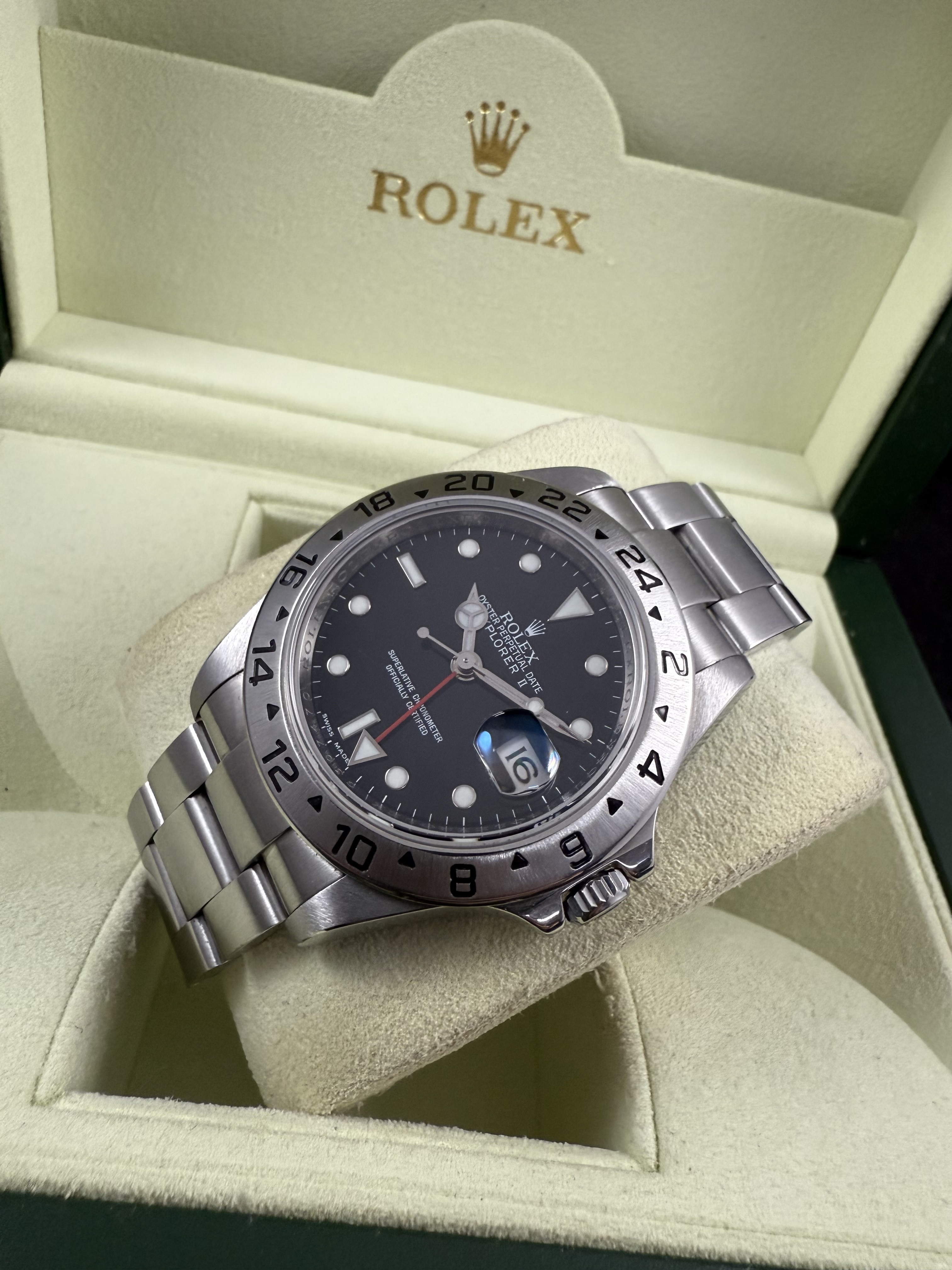 Rolex explorer II เข็มแดง สลักในรุ่นท้ายๆ เครื่อง 3186 สภาพสวยจริง G serie ปี2011 กล่องใบครบ