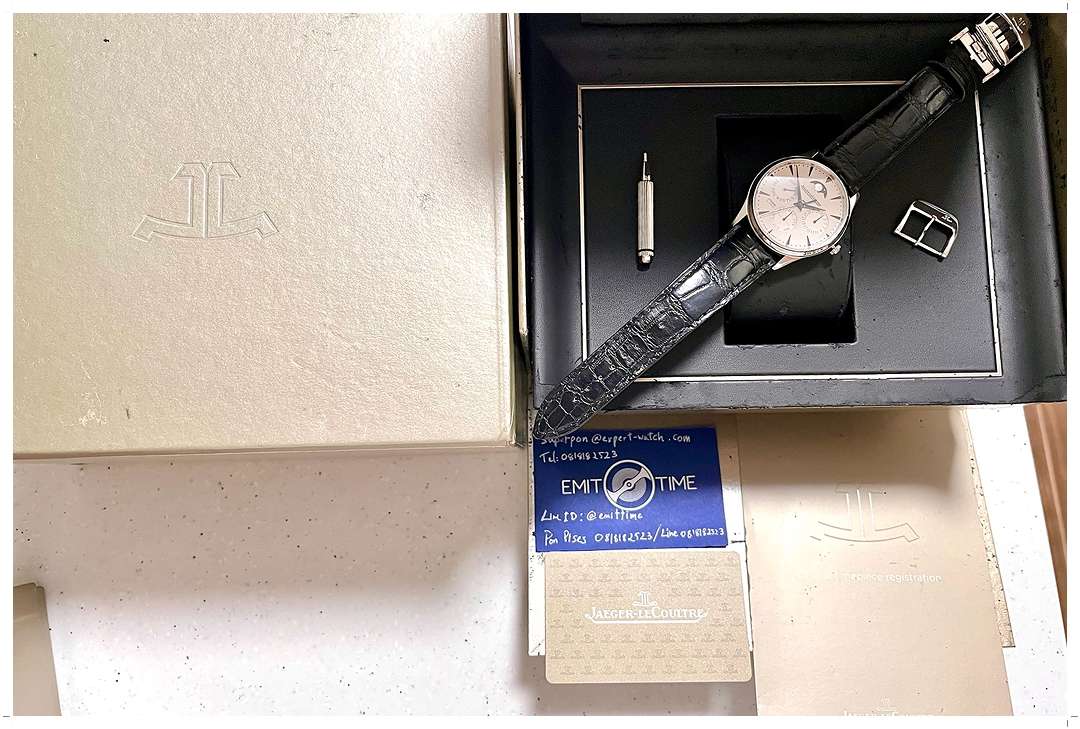 ตำนานขึ้นหิ้งตลอดกาลของ Master Ultra Thin Collection ของ JLC “Dr.Strange” เรือนนี้มาด้วยตัวเรือนและบัคเคิ่ลวัสดุ White Gold 18k แน่นๆตันๆ โมเดลนี้แทบจะหาไม่ได้ในท้องตลาด ตัวเรือนบางเฉียบ หน้าปัดฉลุ Grain เป็นเอกลักษณ์เฉพาะตัวของ White Gold Collection หลักและเข็มพ่น Satin ขัดด้าน ทำจากวัสดุ Smoked Grey Platinum ดูโดดเด่นแตกต่างจาก Steel อย่างเห็นได้ชัด Moonphase ทำจาก White Gold เข้ากับตัวเรือนได้เป็นอย่างดี Layout วางอย่างสวยงามลงตัว หน้าปัดดูสะอาดตาและไม่โล้นจนเกินไป เข็มวินาที Blue Steel ตัดกับหน้าปัดหล่อมาก ขนาดตัวเรือน 39mm ใส่ขึ้นข้อสวยหรูทุกคนทุกโอกาส สายหนัง Alligator สีดำดูหรูหราถึงขีดสุด Price List สูงถึง 1.50 ล้านบาท EMITTIME เสนอราคาต่ำกว่า Price List เกือบล้านบาทครับ!