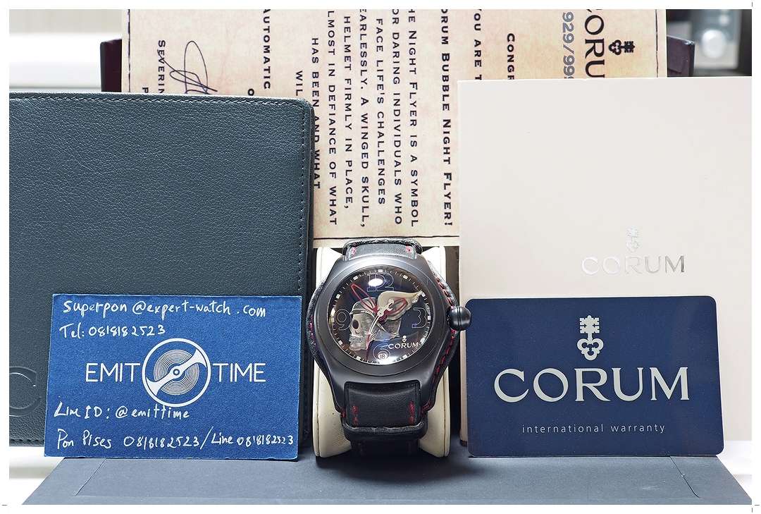 Corum Bubble “Night Flyer” 45mm PVD Collector Series Limited Edition เลขสวย No.929/999 ref.02320-732001 ระบบ Automatic ขนแมวจากการใช้งานทั่วไปเล็กน้อย ไร้รอยจิกบุบบิ่น กระจกโดมสวยใสไร้ริ้วรอย สายหนัง Corum Original เดิมๆสภาพเยี่ยม Y-2005 อุปกรณ์ Full-Set พร้อม Limited Certificate -76,000 บาท-