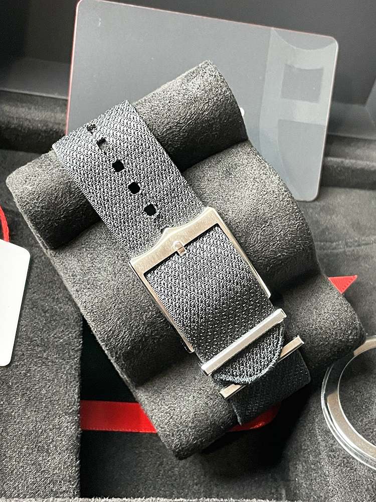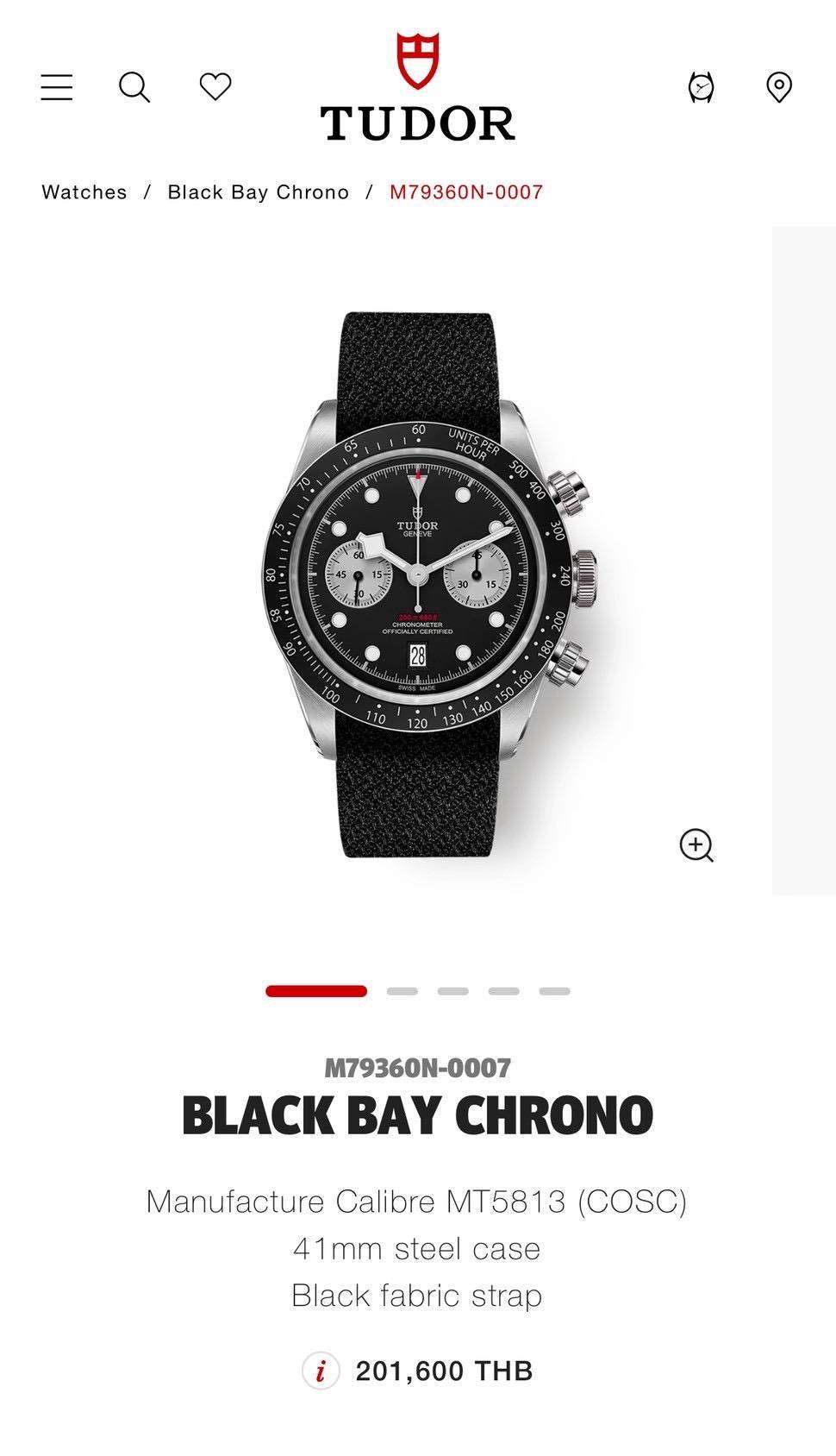 - หน้าสีดำ ขนาด 41 mm ระบบChronograph ตัวเรือนวัสดุ Steel สายผ้า