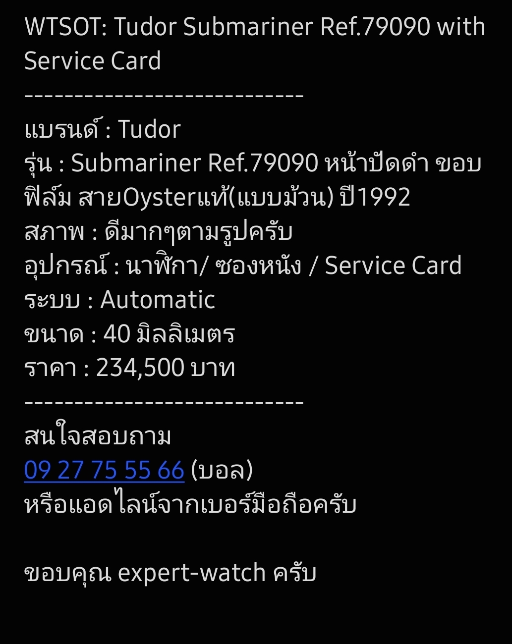 หัวข้อ: WTSOT: Tudor Submariner Ref.79090 with Service Card (อ่าน 370 ครั้ง)