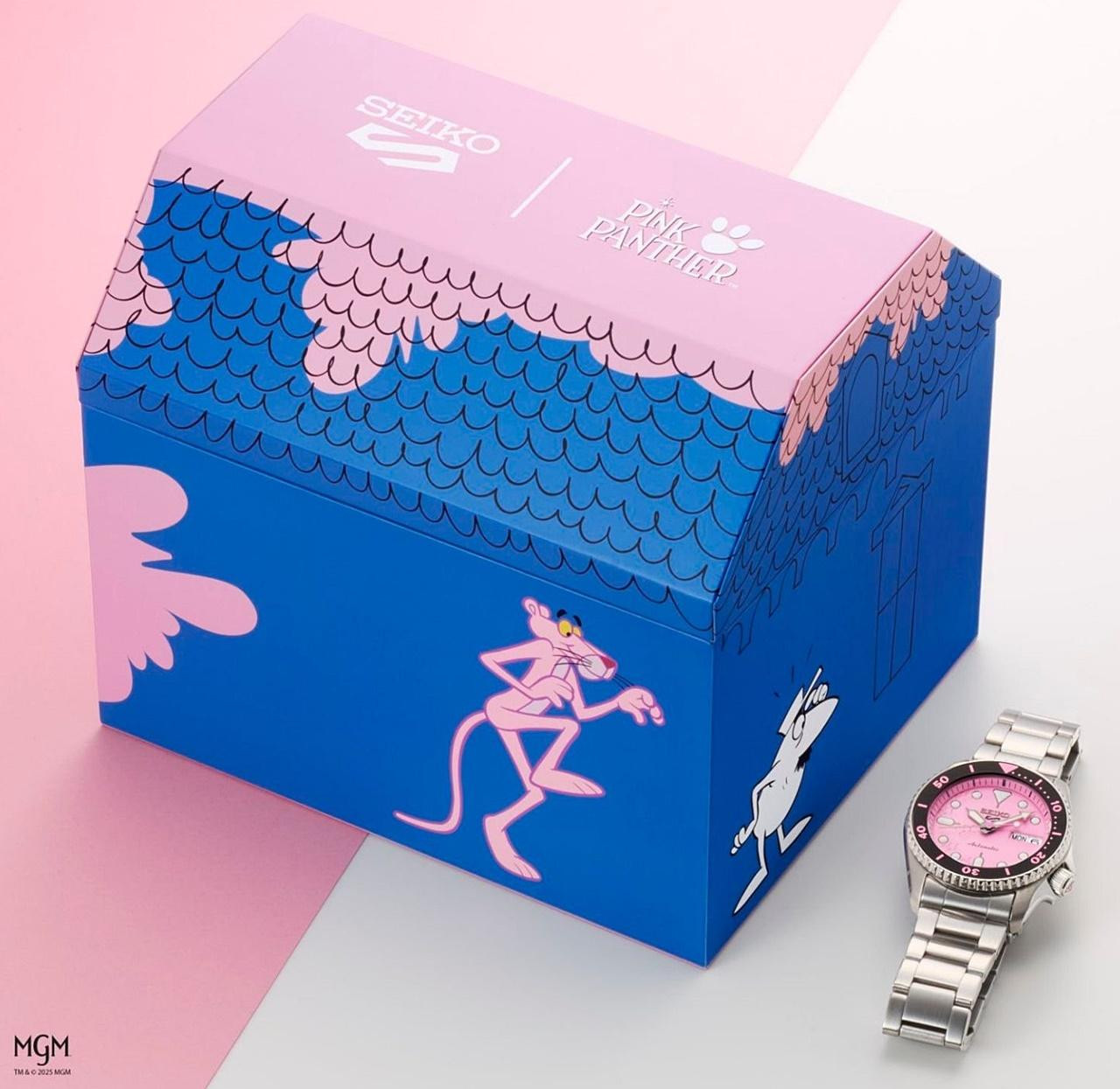 5) กล่องนาฬิกาดีไซน์พิเศษได้แรงบันดาลใจจากบ้านลิตเติ้ลแมนสีชมพู ถ่ายทอดความสนุกของการปะทะระหว่างพิงค์แพนเธอร์และลิตเติ้ลแมน