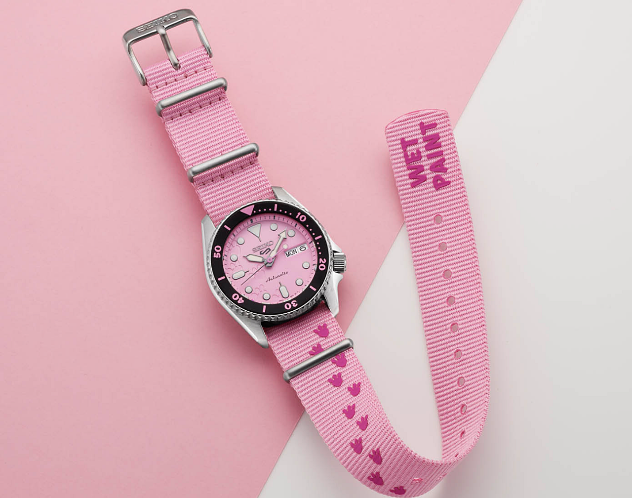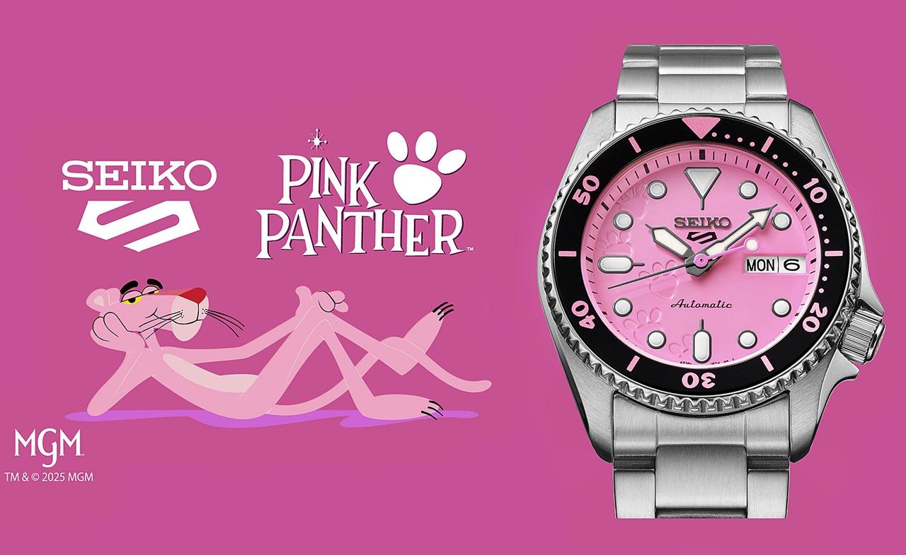 นับตั้งแต่เปิดตัวในปี 1964 เจ้า Pink Panther ได้ครองใจผู้คนทั่วโลกด้วยความเท่ ขี้เล่น และมีเสน่ห์เฉพาะตัว โดยนาฬิกา Seiko 5 Sports รุ่นนี้ มีแรงบันดาลใจจากแอนิเมชัน The Pink Panther และออกแบบได้อย่างลงตัว ได้แก่