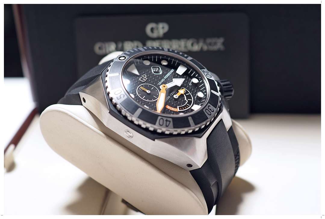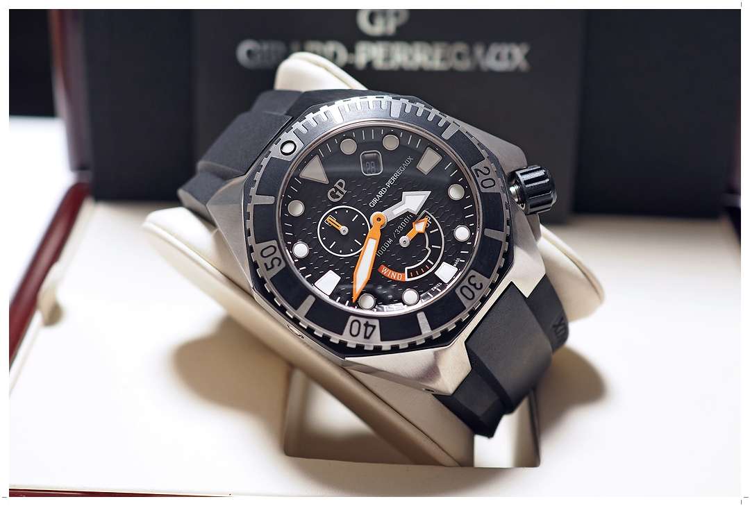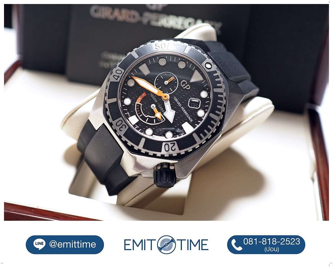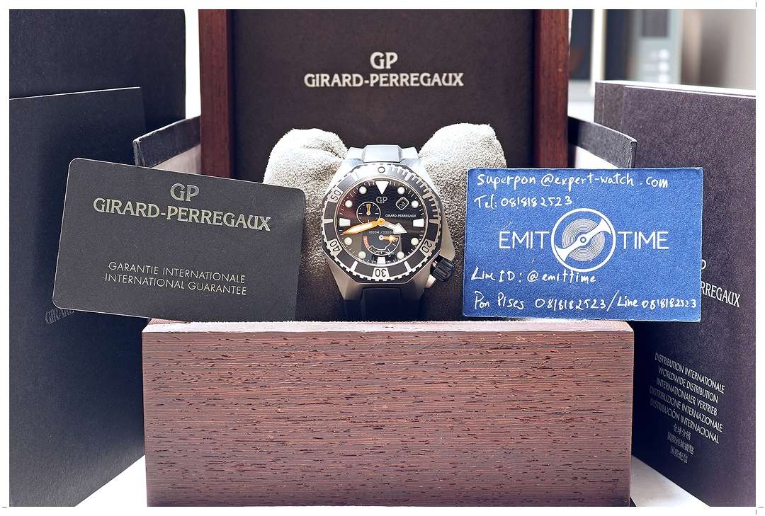 100% New Old Stock (NOS)!! **ลดจากป้าย 65%** Girard-Perregaux Sea Hawk Black Rubber PVD Steel 44mm ref. 49960-19-631-FK6A ของใหม่!! ไม่เคยผ่านการใช้งาน สวยไร้ที่ติ ดำน้ำลึก 1,000 เมตร ระบบ Automatic 2 เข็มครึ่ง พร้อมเข็ม Power Reserve และหน้าต่างวันที่ เครื่อง In-House Caliber GP03300-0074 (ราคา Price List 424,000 บาท) Y-2014 Full-Set -150,000 บาท-