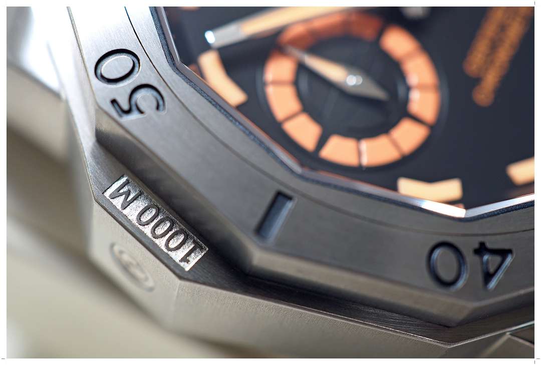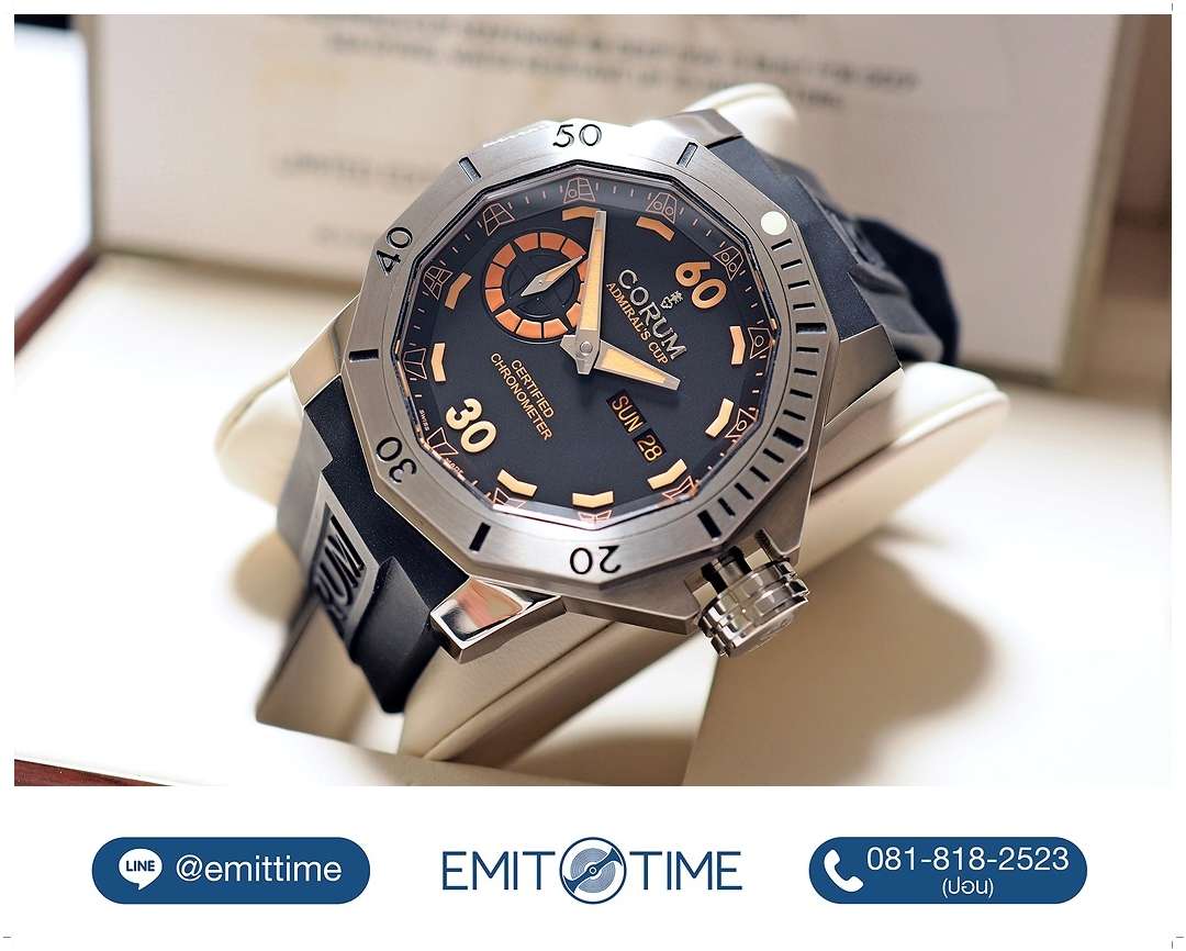 Corum Admiral’s Cup Seafender โมเดลนี้เป็นรุ่นพี่ใหญ่สุดของ Collection ครับ เป็น Limited Edition ผลิตเพียงปี 2010 ปีเดียว และผลิตเพียง 200 เรือนทั่วโลก ตัวเรือน Titanium ขนาด 48mm ใส่เต็มข้อสวยดุดันมาก น้ำหนักเบาและทนทานต่อรอยขีดข่วน ขอบเบเซลหมุนได้แบบ Uni-Directional เข็มส้มและเข็มวินาทีระบบ 2 เข็มครึ่ง ตัดหน้าปัดได้อย่างลงตัว ดู Sporty สุดขีด พร้อมหน้าต่าง Day-Date ที่ตำแหน่ง 3 นาฬิกา กันน้ำลึกถึง 1,000 เมตร ฝาหลังสลัก Corum DEEP DIVE 1000 METERS Limited Edition Number (112/200) ราคา Price List สูงถึง 496,000 บาท EMITTIME เสนอราคาต่ำป้ายถึง 82% ครับ