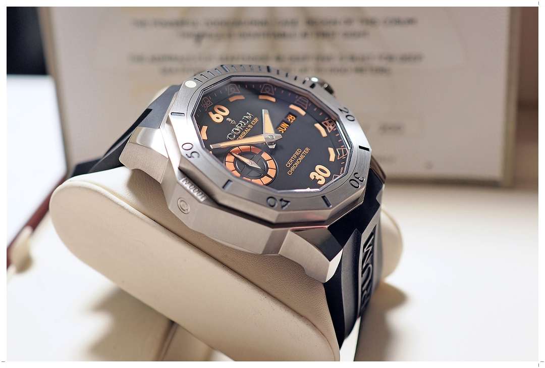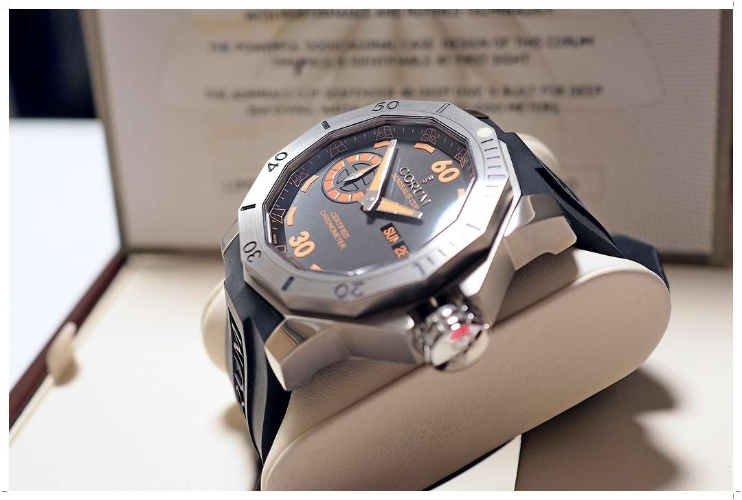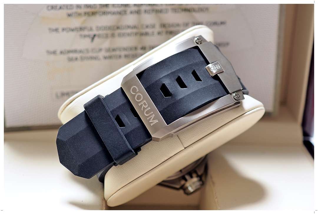 นาฬิกาเป็นของใหม่ ไม่เคยผ่านการใช้งานครับ ตัวเรือน Titanium ไร้ตำหนิ กระจกตัดแสง Double Anti-Reflection Coating ไร้ริ้วรอย กลไก Corum Caliber CO-947 ระบบ Automatic 2 เข็มครึ่ง มาตรฐาน Chronometer พร้อม Helium Escape Valve ทำงานได้อย่างสมบูรณ์แบบ สายไม่มีร่องรอยการใช้งาน กลัดรูรัดหมอนนอนเซฟตลอดชีวิต