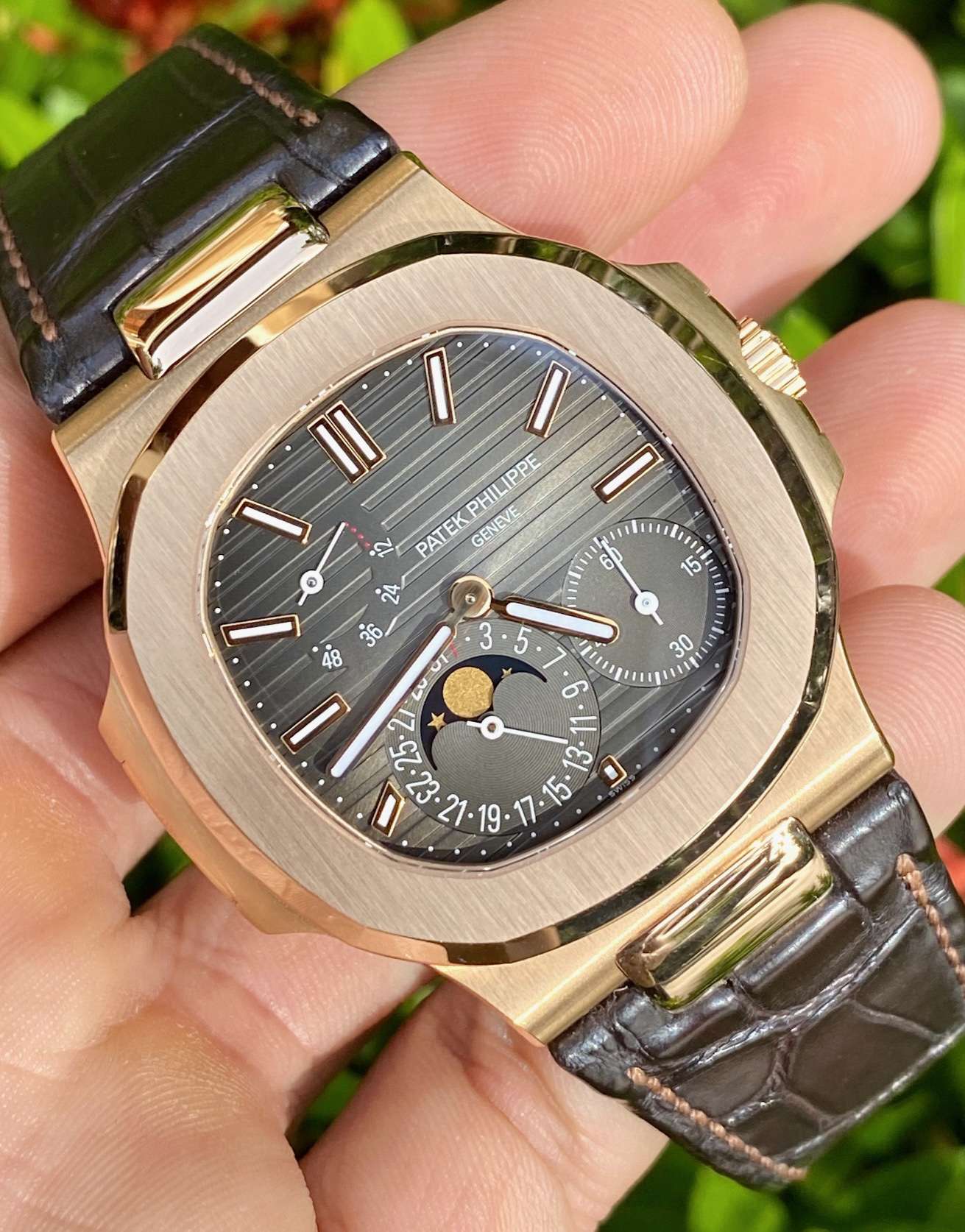 เรือนนี้แทบไม่ต้องบรรยายมาก เพราะนี่คือ Nautilus 5712 หนึ่งในรุ่นไอคอนิกตลอดกาลของ Patek Philippe ด้วยความต้องการสูงและปัจจุบันเลิกผลิตแล้ว ทำให้ราคายังคงแข็งในตลาดเสมอ