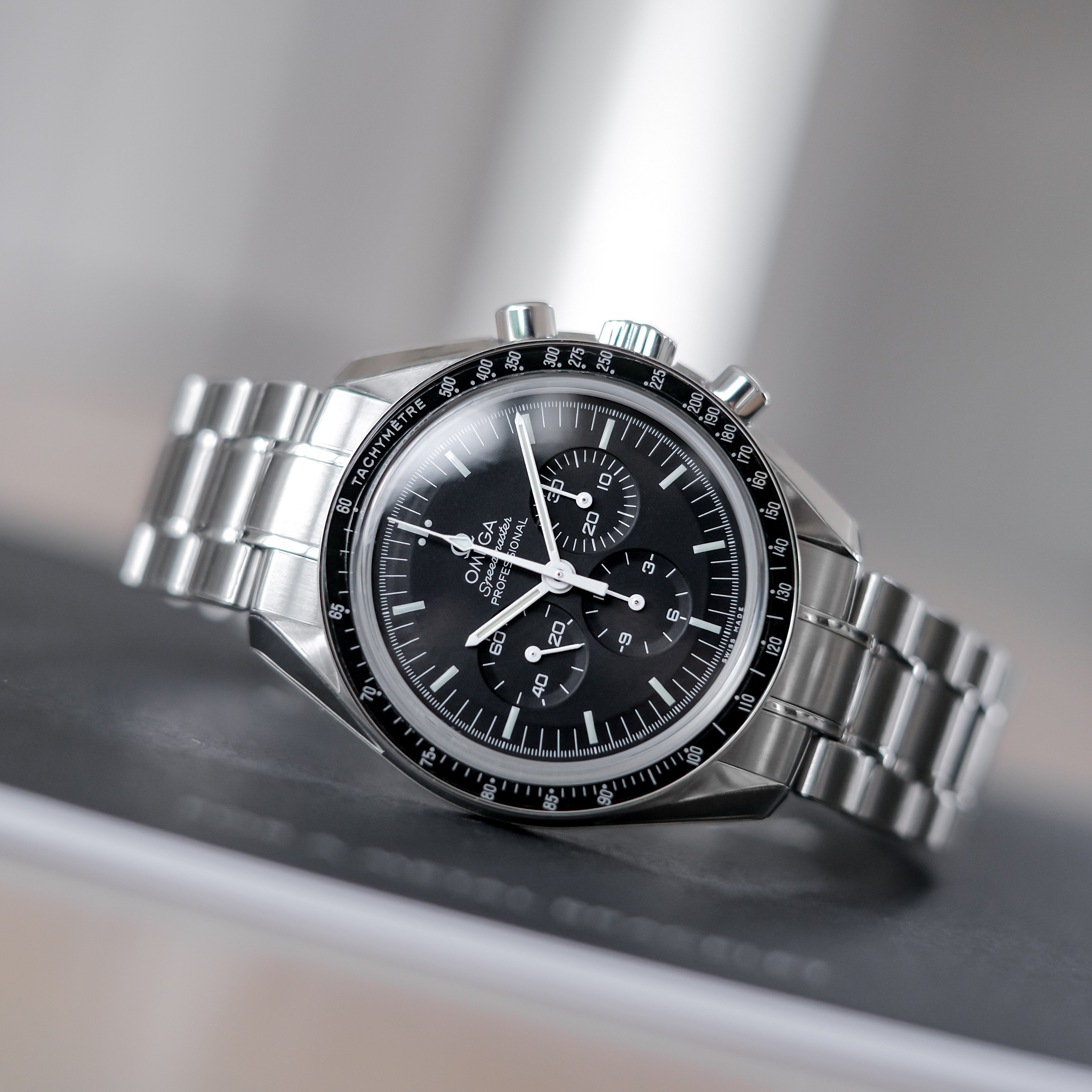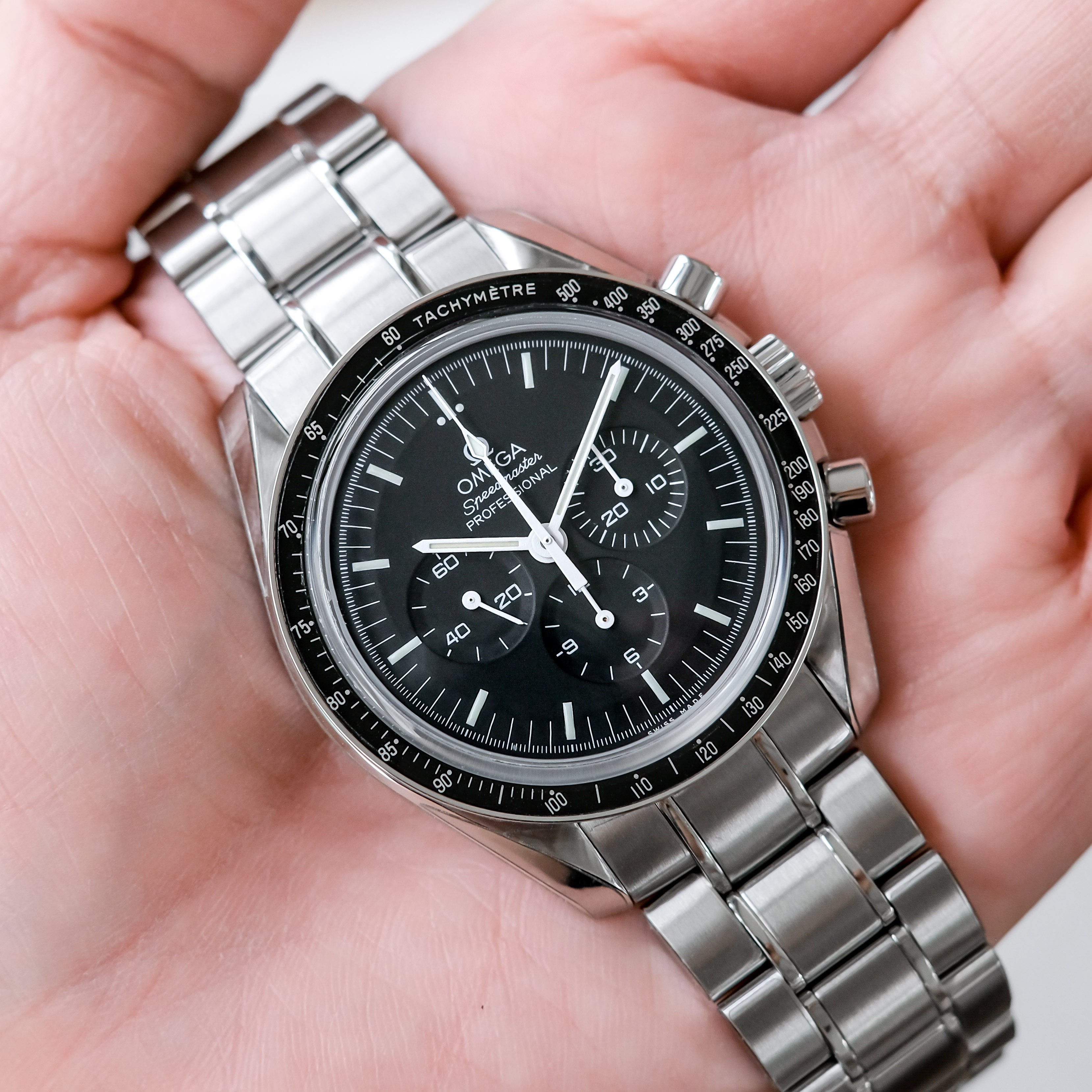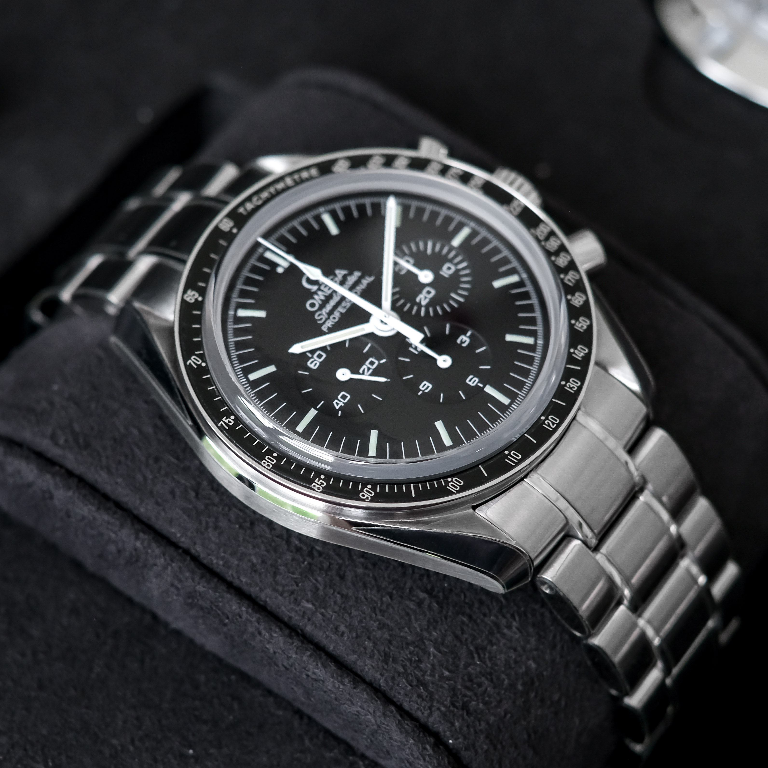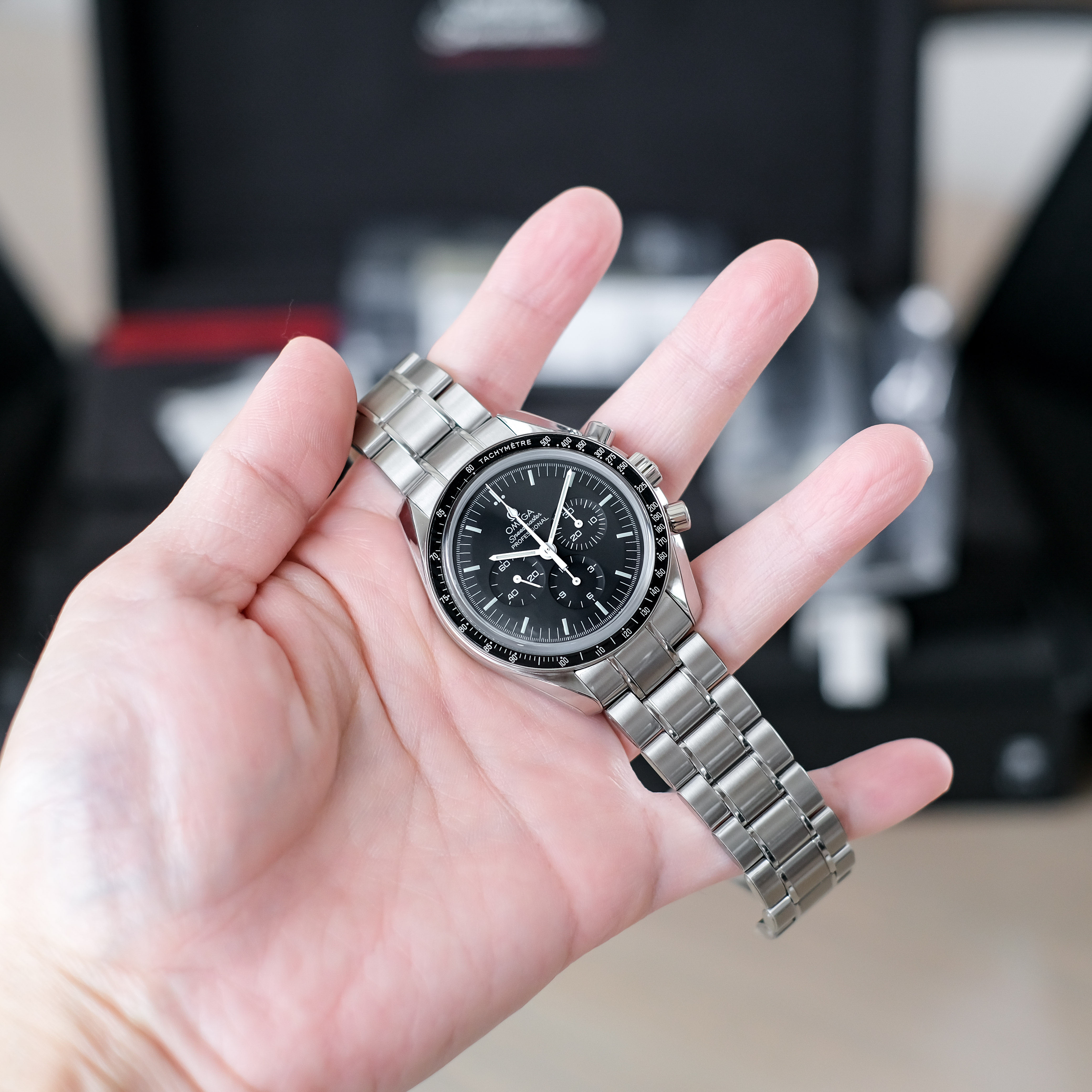 Omega Speedmaster Moonwatch 1863 รุ่นฮอตฮิต ที่ต้องมีติดบ้านไว้ ดิสคอนเรียบร้อยแล้ว ตัวเรือนขนาด 42mm. หน้าปัดดำ