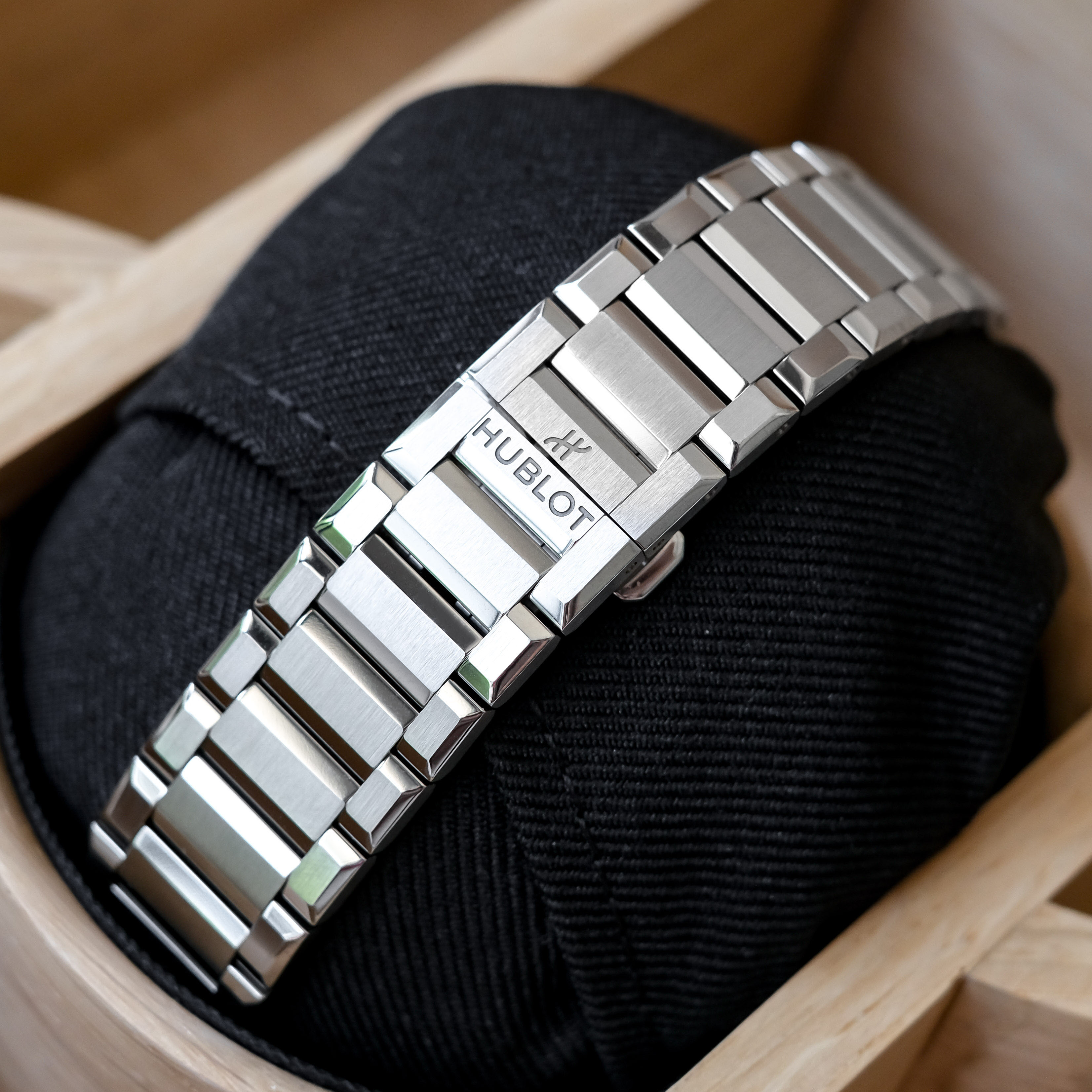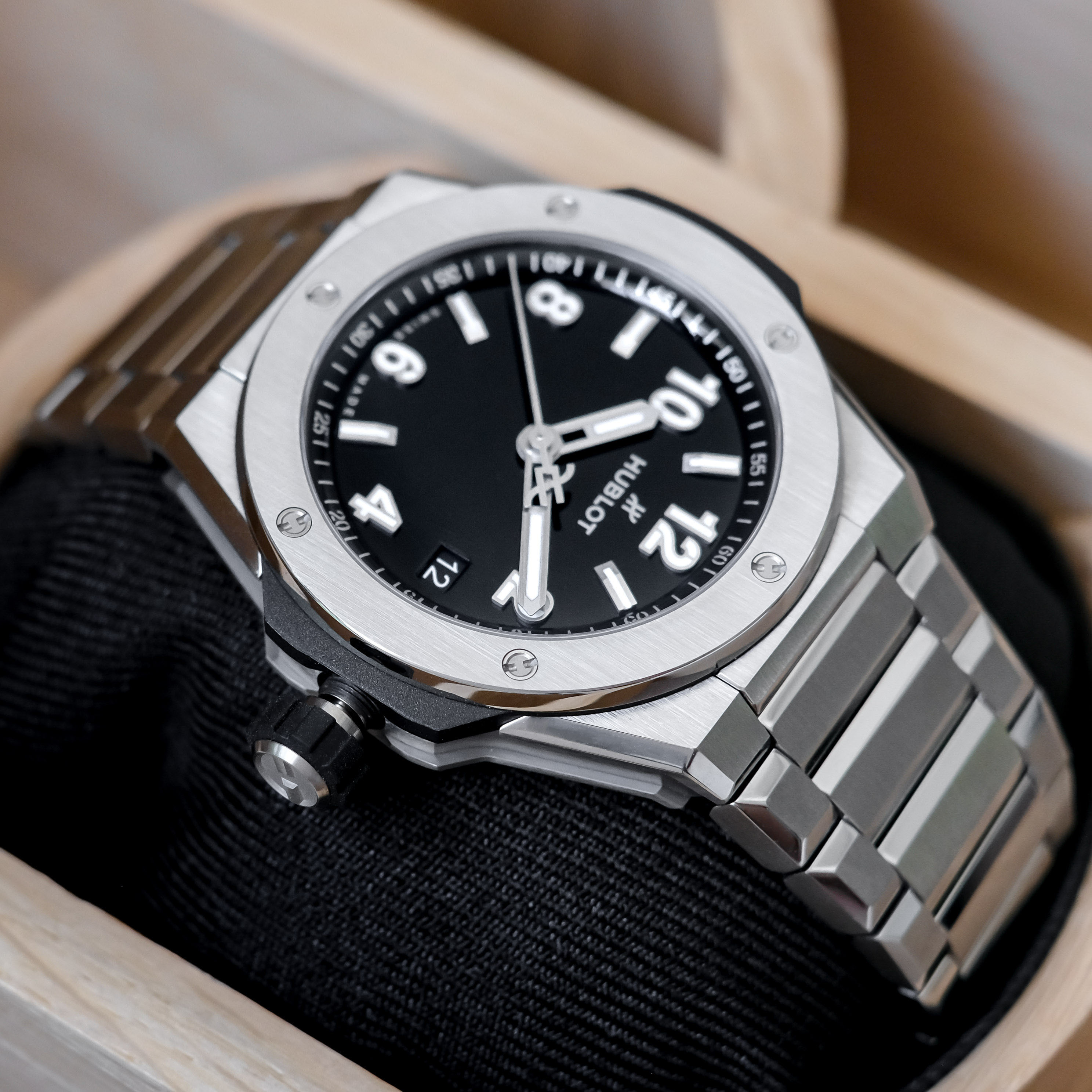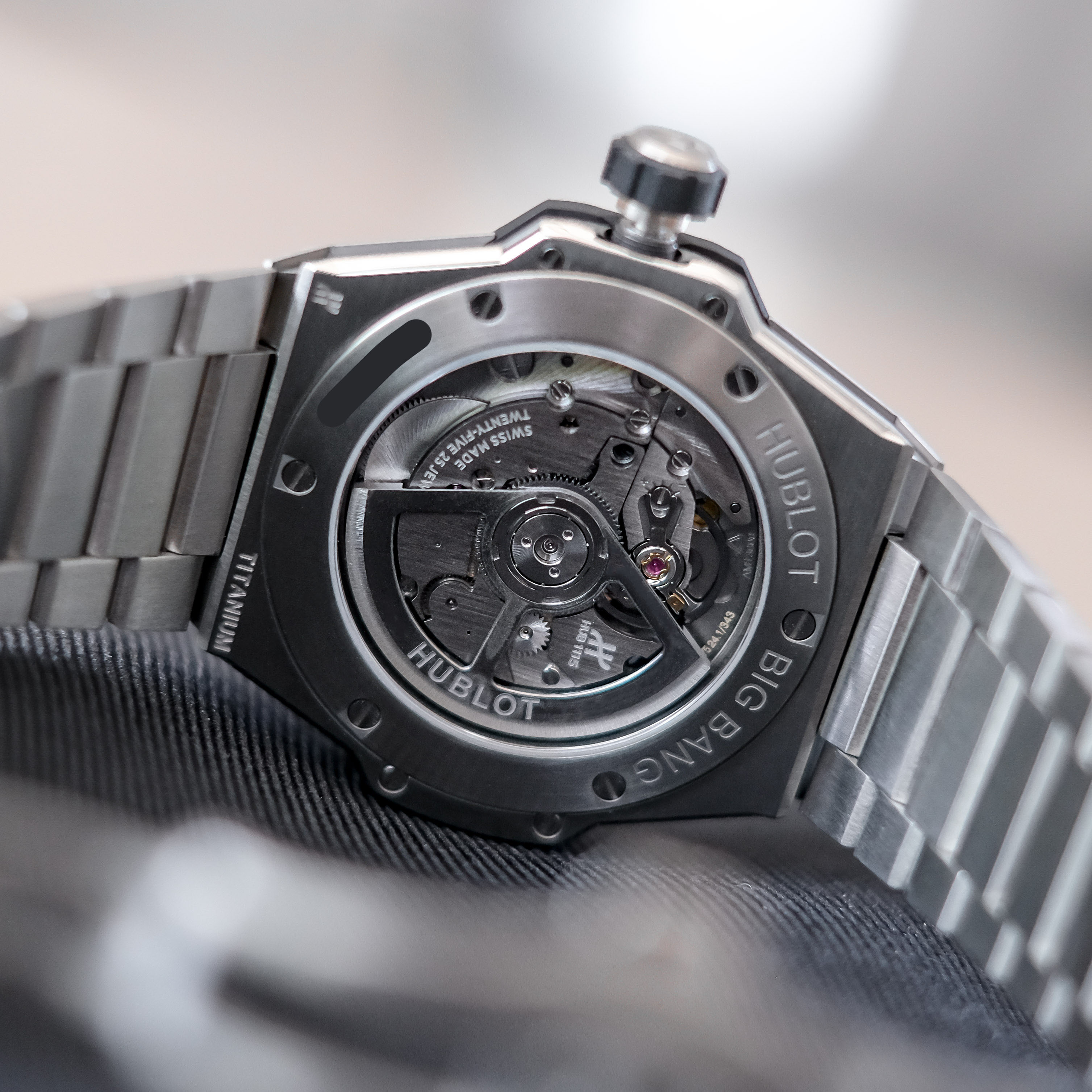 Cal. HUB1115 กระจก Sapphire หลังเปลือยเห็นเครื่องสวยๆ มาพร้อมสาย Titanium ทั้งเรือน ใบลงปี2025 เป็นนาฬิกาที่ใส่