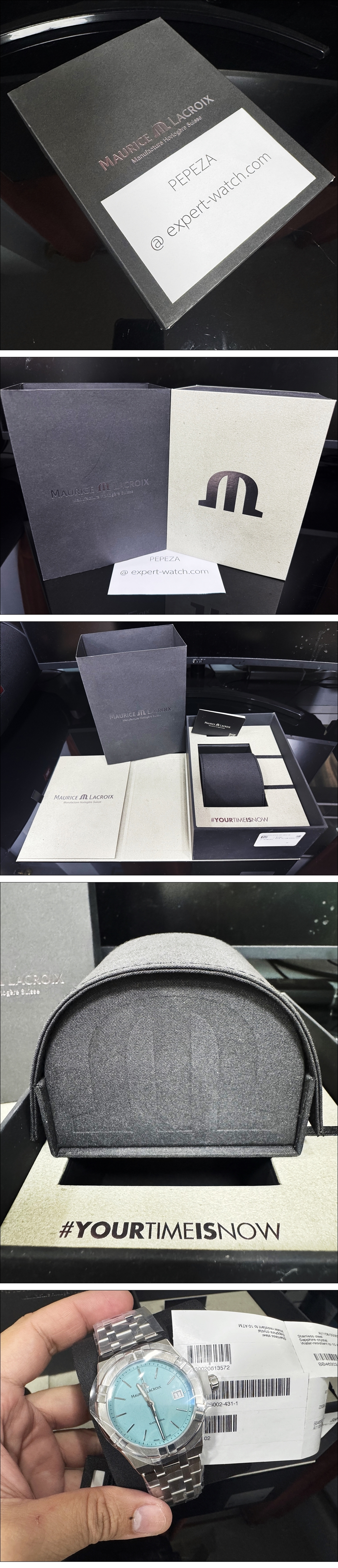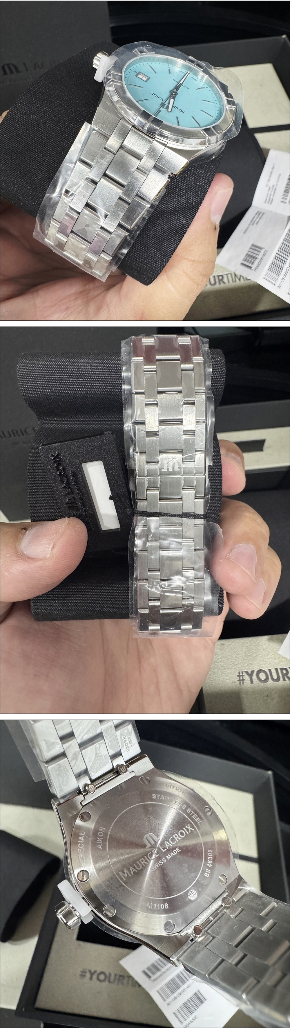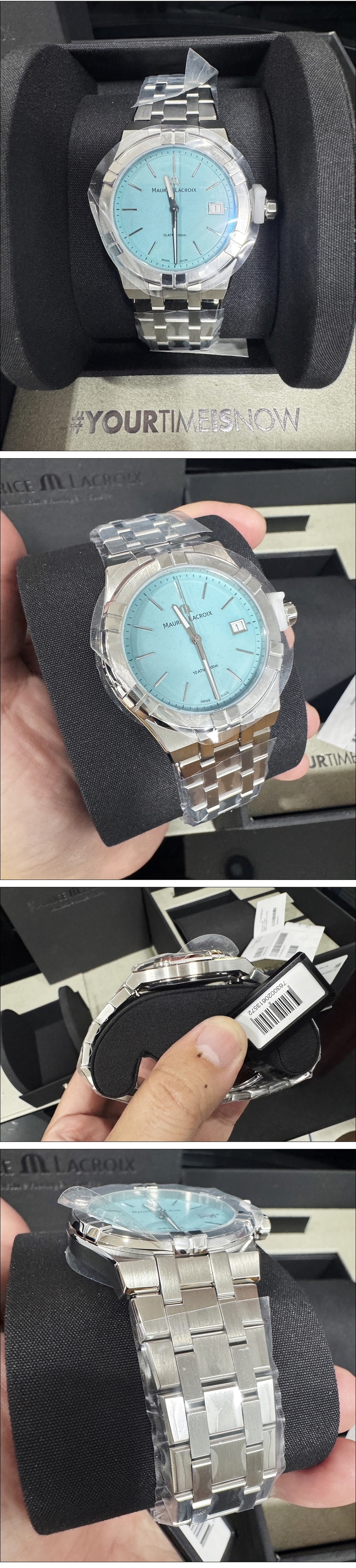 นาฬิกา Maurice Lacroix Aikon Quartz Special Edition หน้าปัดสี Tiffany Blue ขนาดตัวเรือน 40 มิล นาฬิกาเป็นของใหม่ ไม่เคยใส่ ยังห่ออยู่ในซีล อุปกรณ์ครบๆ กล่องนอก กล่องใน ป้ายแท็ค คู่มือ และใบรับประกัน (04/2026) นาฬิกาดูสวย ดูหรู มากครับ