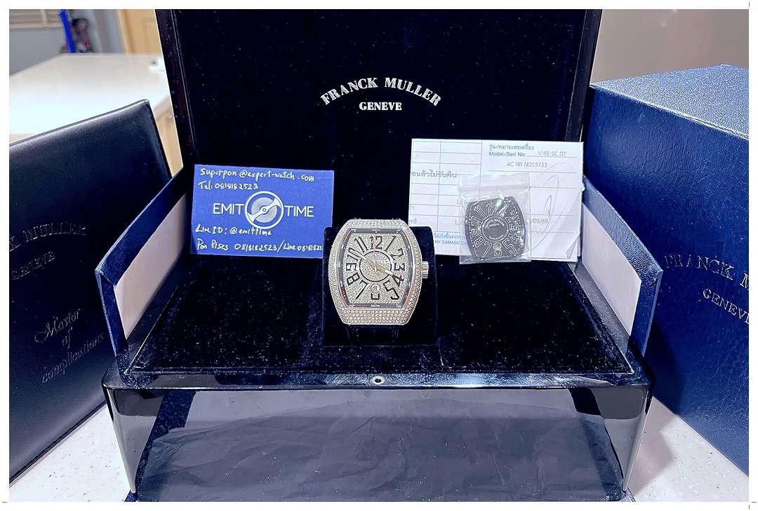 99% New!! Franck Muller Vanguard V45 Full-Diamond (After Settings) 44mm x 53.7mm มาพร้อมแผ่นหน้าปัดเดิม Franck Muller Original อีก 1 แผ่น สภาพสวยนางฟ้า นอนเซฟ แทบไม่ต่างกับของใหม่ สายหนัง Alligator เดิมๆ Franck Muller Original สภาพยอดเยี่ยมมาก Y-2023 Full-Set ราคาดีที่สุดในตลาด -168,000 บาท-