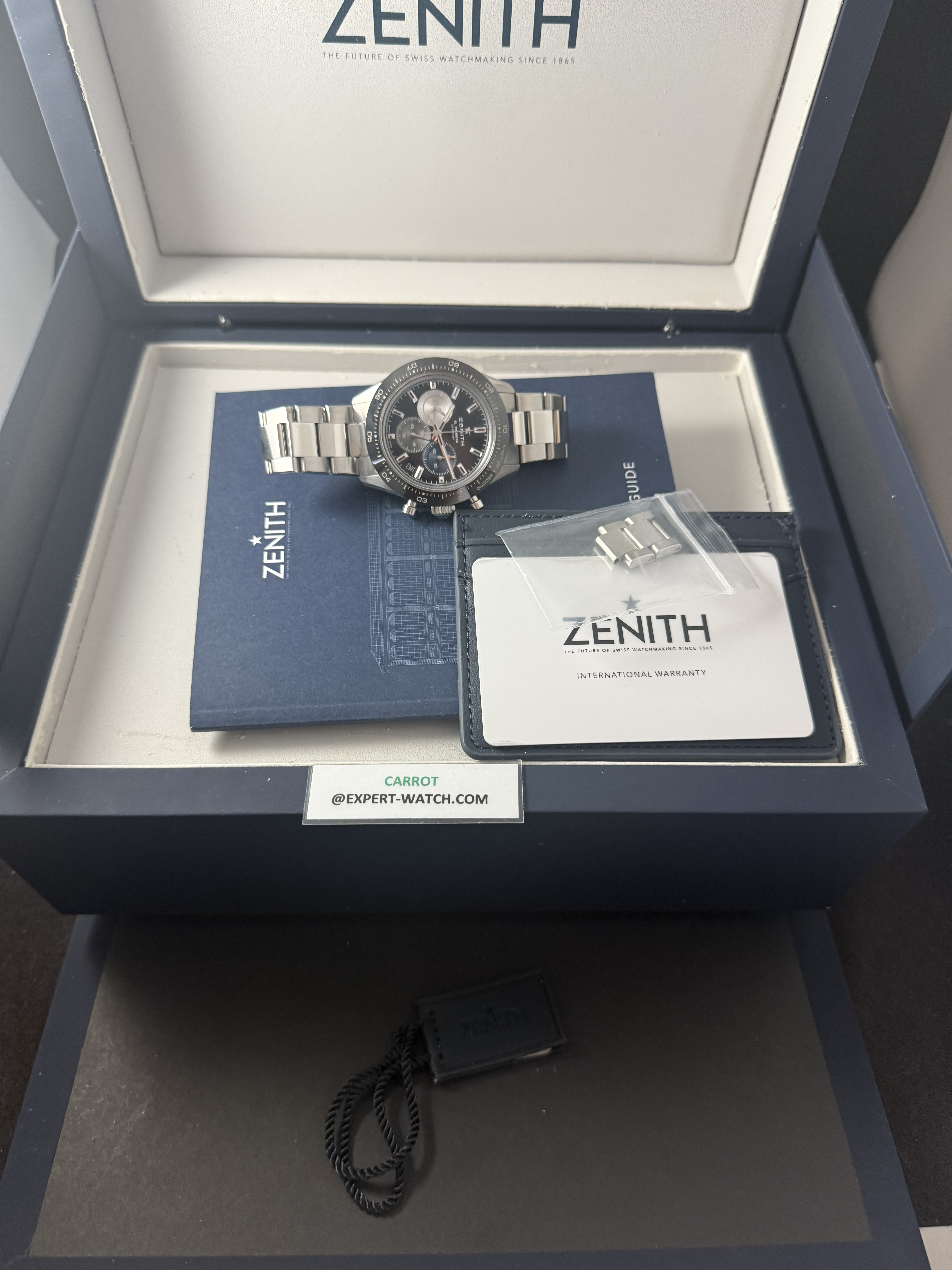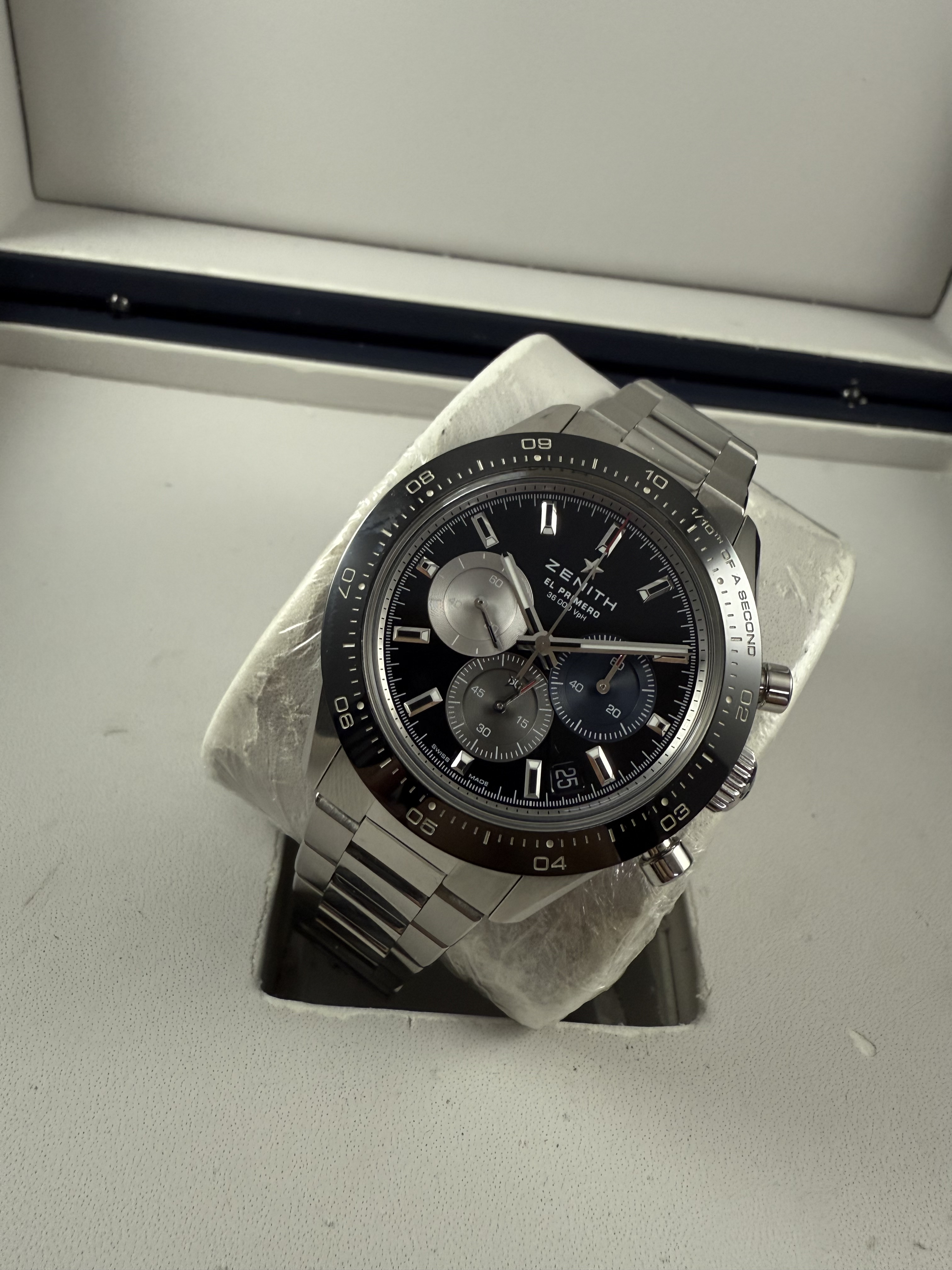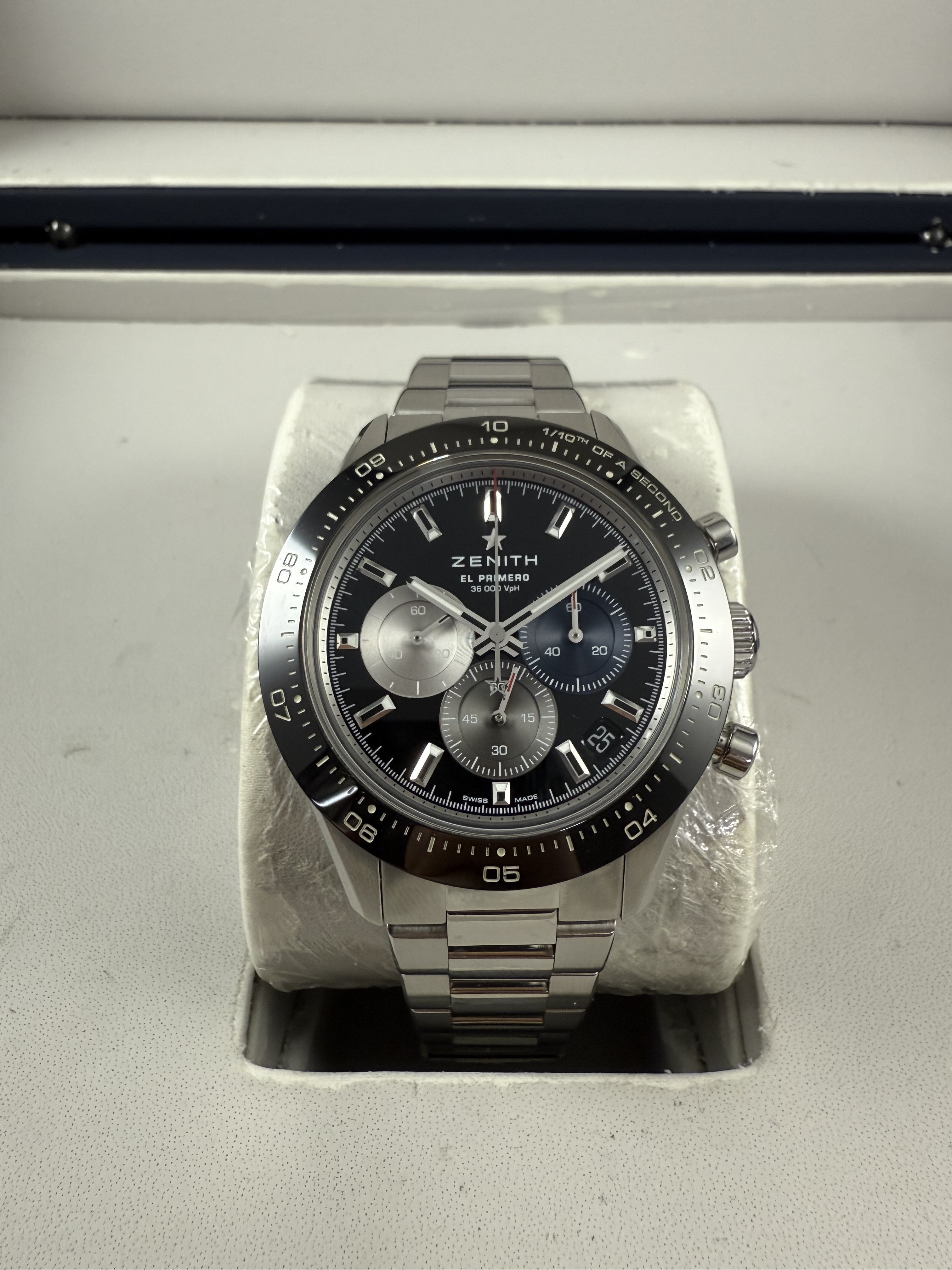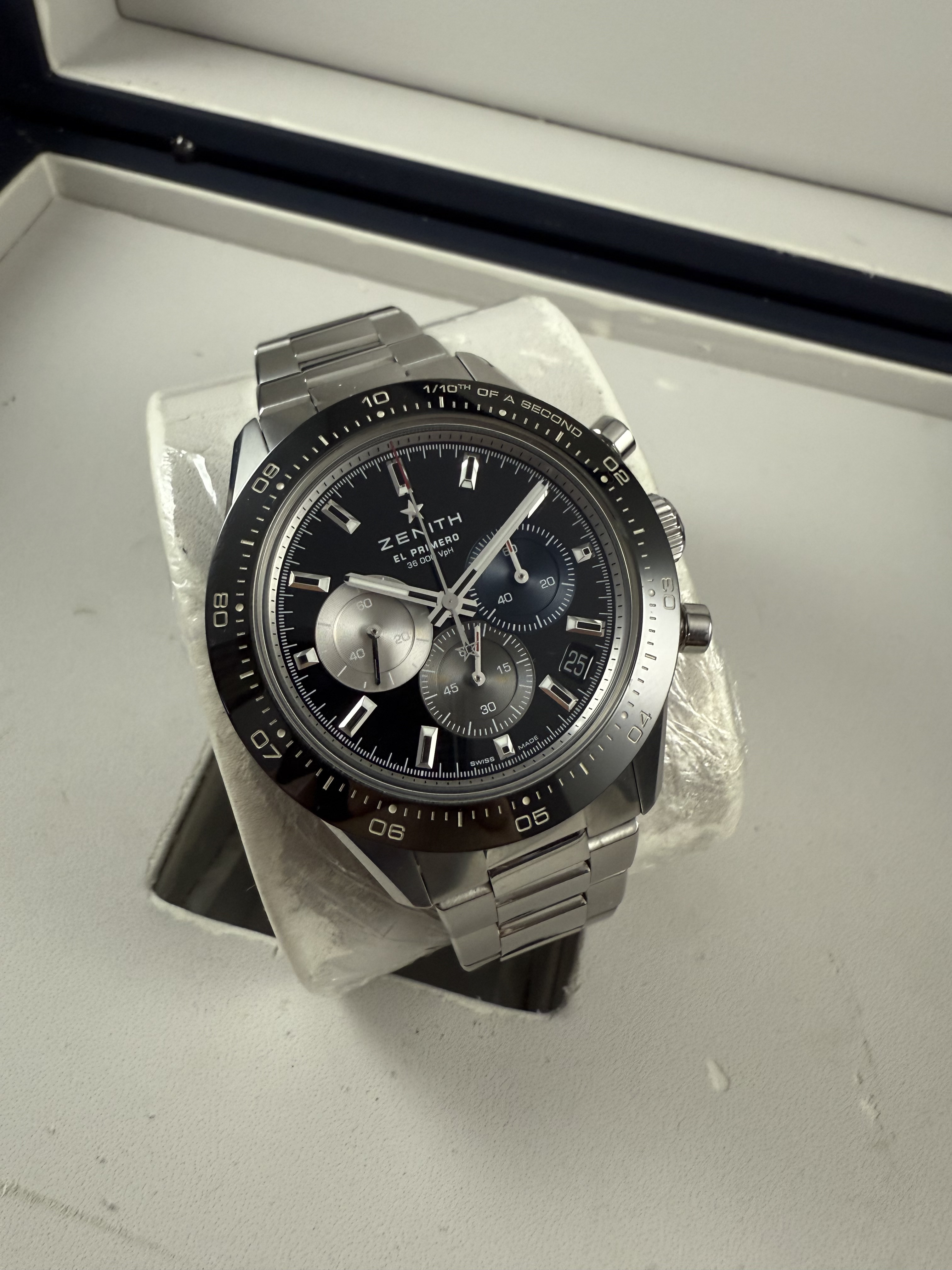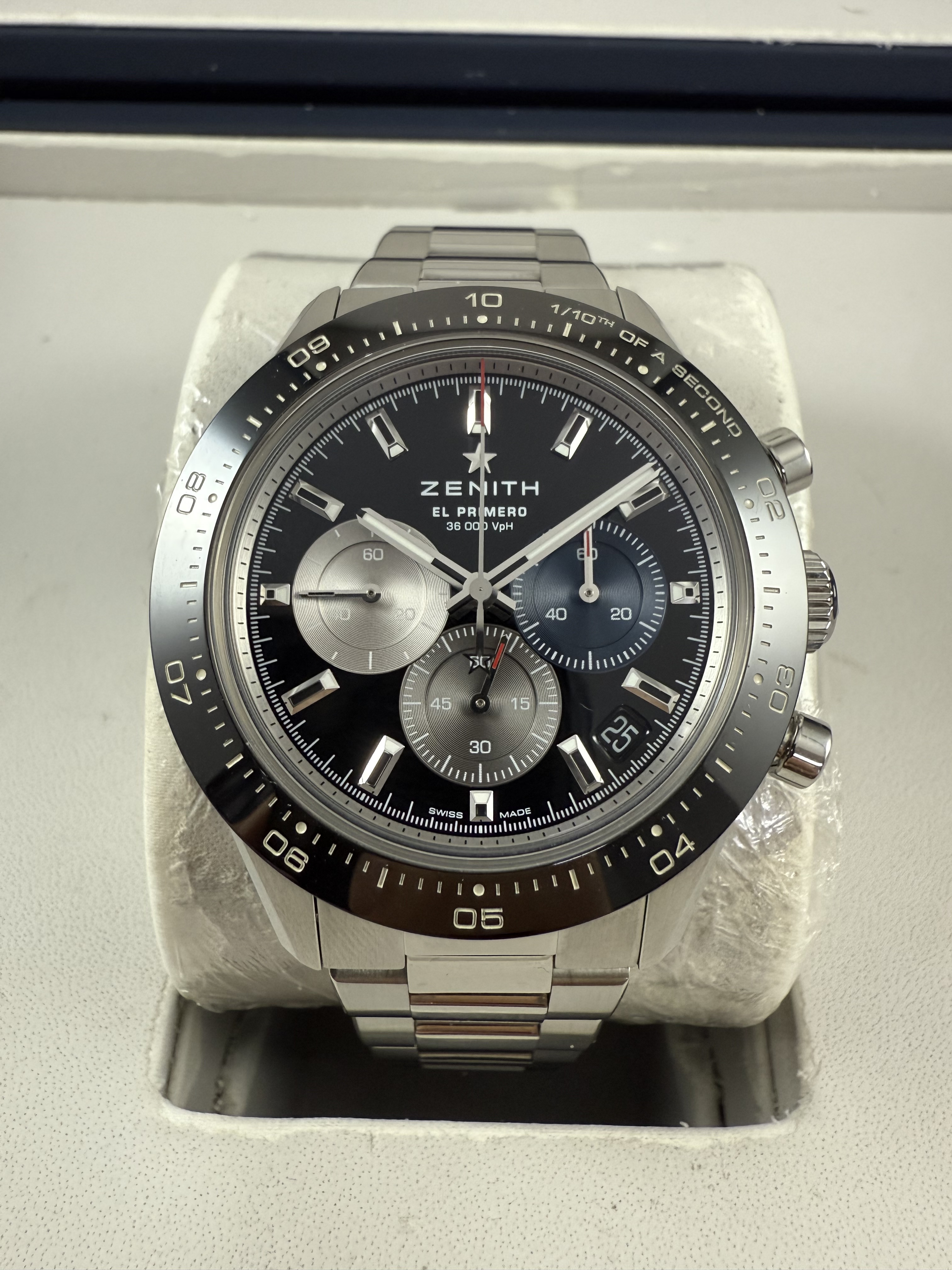Zenith el primero chronomaster sport 41mm ขอบเซรามิคหน้าดำวงสี สวยจริง รุ่นใหม่ ปี22 ราคาดีมาก กล่องใบ pendulum