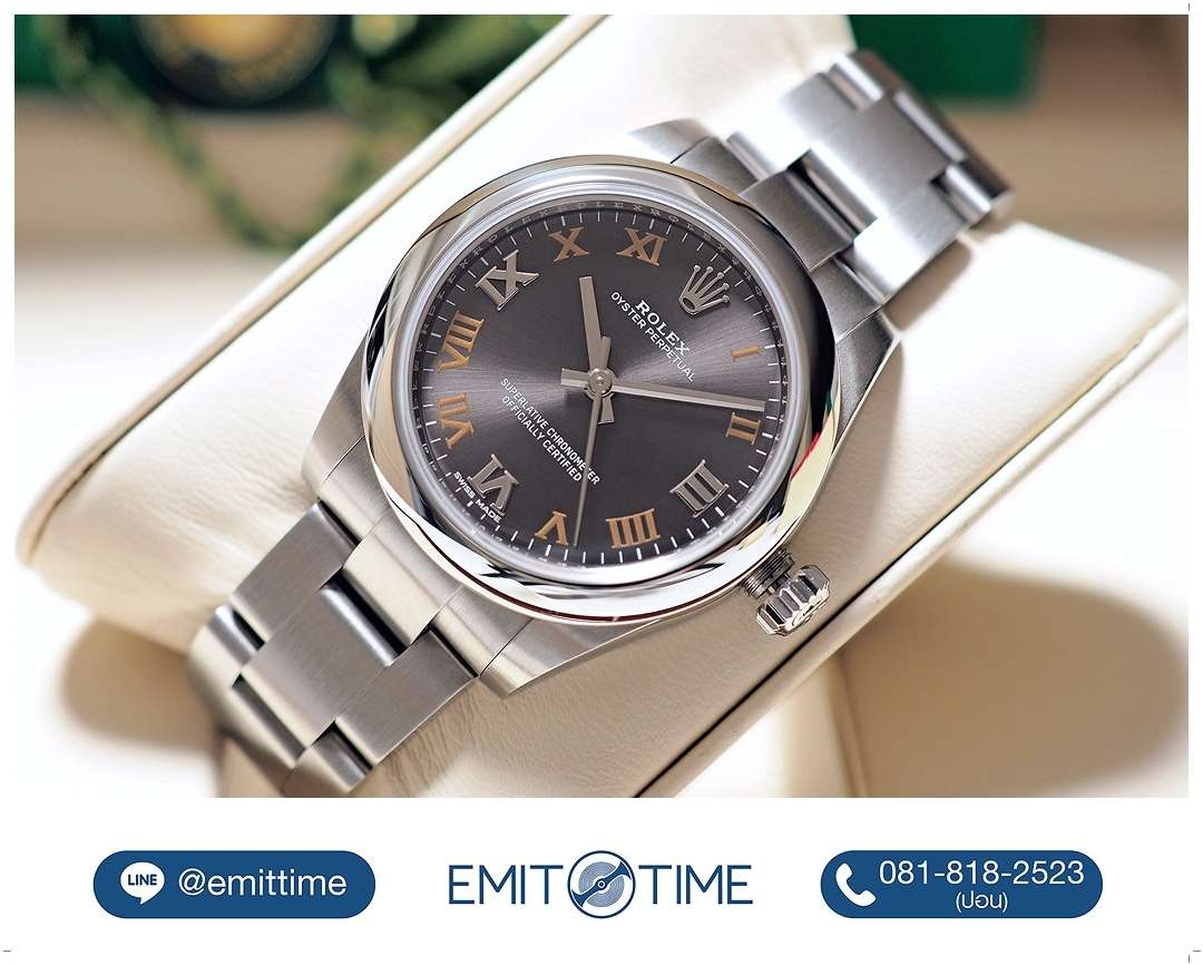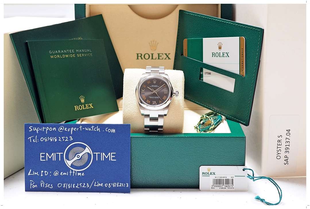 Rolex Oyster Perpetual (OP31) 31mm หน้าหายาก Chocolate Rhodium หลักโรมันสี Beige สลับหลักทองคำขาว ref.177200 สภาพสวยมากๆ ไม่เคยปัดขัด! ใช้งานน้อย ไร้รอยหนักใดๆทั้งสิ้น สติ๊กเกอร์จากโรงงานยังเหลือที่บานพับเต็มๆ Y-2019 Full-Set -164,000 บาท-