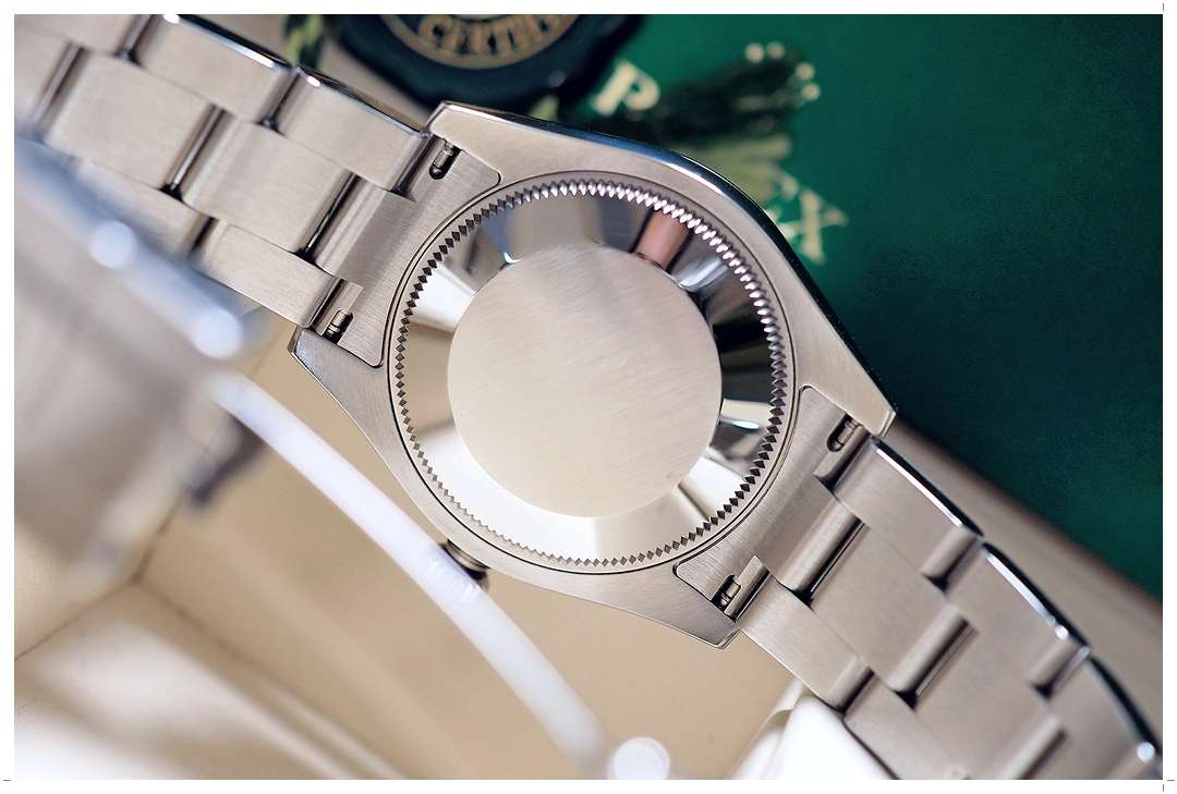 Oyster Perpetual เรือนนี้หาในตลาดหาค่อนข้างยากมากครับ เจ้าของเก่าใช้งานน้อยมาก นาฬิกาสภาพสวย ขนแมวน้อยมากๆ ไร้รอยหนักใดๆทั้งสิ้น ไม่เคยผ่านการปัดขัด สลักขอบใน สายตัน กระจกเลเซอร์ เครื่อง Rolex Caliber 2231 สะสมพลังงานได้ 48 ชั่วโมง ทำงานได้อย่างสมบูรณ์ ดูหรูหราและไม่ซ้ำใคร ใส่เป็น All-Rounder Watch ได้ทุกวัน ขนาดตัวเรือน 31mm ใส่สวยที่สุดสำหรับผู้หญิงทุกคนครับ