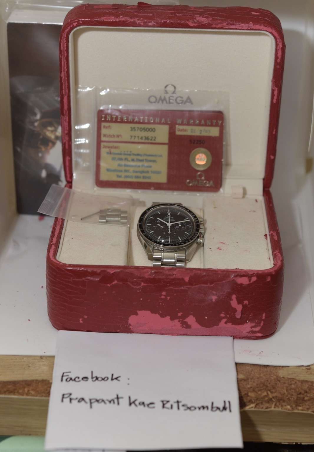 -ขาย omega moonwatch 1861 ขนาดหน้าปัด42mm.กล่องใบครบ ลงปี 2005 มีรอยขนแมวน้อยมาก ไม่มีจิก บิ่น ระบบใขลาน กล่องแดงรอกตามปรกติของรุ่นนี้ มีใบเช็คแท้จาก expert นัดเช็คแท้ได้ที่สาขาลาดพร้าวครับ นาฬิกาอยู่สระบุรี ขาย 100,000 บาท สนใจติดต่อ 0811747423