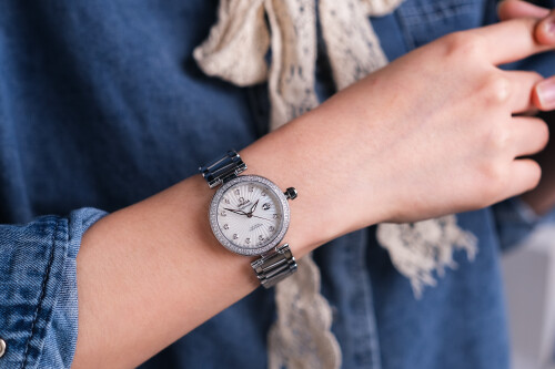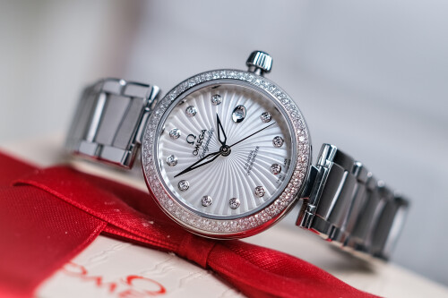 ✨ เรือนนี้คือตัวแทนของเสน่ห์ผู้หญิงที่ทันสมัยแต่ยังคงความอ่อนโยนไว้ในดีไซน์คลาสสิก Ladymatic เป็นไลน์ที่ Omega รังสรรค์เพื่อ “หญิงสาวผู้หลงใหลความเที่ยงตรงพอ ๆ กับความงาม” ความเงางามของเปลือกหอยมุกตัดกับประกายเพชรบนขอบตัวเรือนสะท้อนความหรูหราเหนือกาลเวลา ทุกองค์ประกอบตั้งแต่ลายคลื่นบนข้างเคสจนถึงเครื่องที่มองเห็นผ่านฝาหลัง ล้วนสื่อถึงความพิถีพิถันระดับงานศิลป์