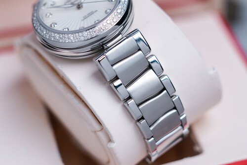 ✨ เรือนเวลาสำหรับสุภาพสตรีที่ผสานความประณีตและเทคโนโลยีระดับสูง ตัวเรือน 34 mm. ขอบประดับเพชรฝังแบบ Snow-set เปล่งประกายรอบหน้าปัด White Mother-of-Pearl ลายก้นหอย Supernova สะท้อนแสงวิบวับในทุกองศา หลักชั่วโมงฝังเพชรแท้ ตัวเรือนและสาย Steel ขัดเงาสลับด้านเรียบหรู หลังเปลือยเห็นกลไก Automatic Co-Axial 8520 โชว์งานเครื่องที่งดงามในทุกจังหวะการเคลื่อนไหว
