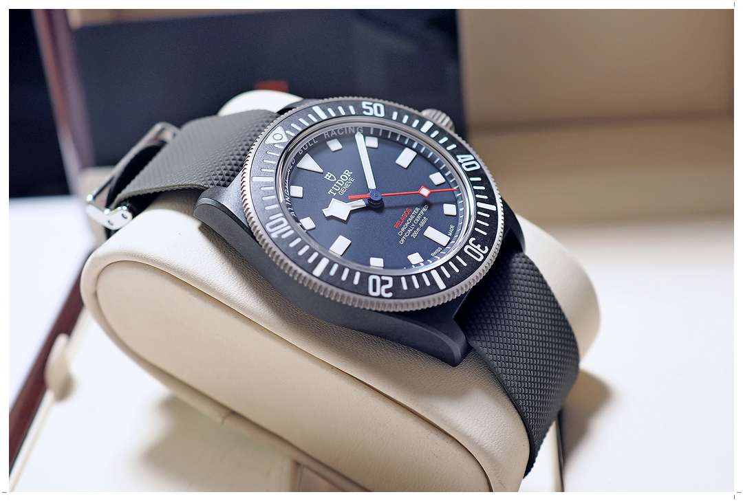 Pelagos FXD โฉมนี้เป็น Edition ที่ทำเพื่อ Celebrate Long-Term Partnership ระหว่าง Tudor กับ Alinghi Red Bull Racing ที่มีมาอย่างยาวนาน ฝาหลังแกะสลัก Red Bull Racing อย่างเป็นเอกลักษณ์ สติ๊กเกอร์ฝาหลังยังอยู่ ขนาดตัวเรือน 42mm ทำจาก Carbon Composite ใส่สบายและเต็มข้อพอดีมากๆ หน้าปัดสี Matte Blue ตัดกับเข็มวินาทีสีแดง เข้ากับขอบเบเซลและตัวเรือนสีดำเป็นอย่างดี ใส่เข้าได้กับสายทุกชุด พรายน้ำสว่างสดใสสุดๆ กระจก Sapphire ไร้รอยขีดข่วน แต่งตัวง่าย เข้าได้กับทุกชุด ราคา Price List สูงถึง 147,700 บาท EMITTIME เสนอราคาของใหม่เรือนนี้ถูกกว่าป้ายเกือบครึ่งราคาครับ