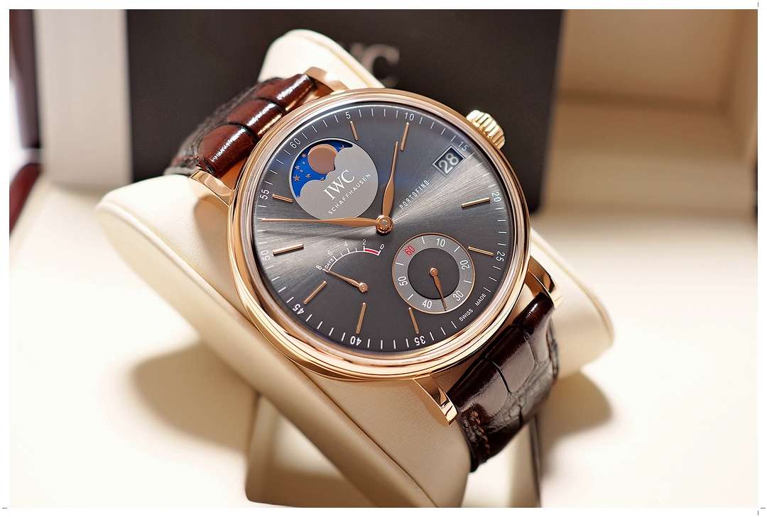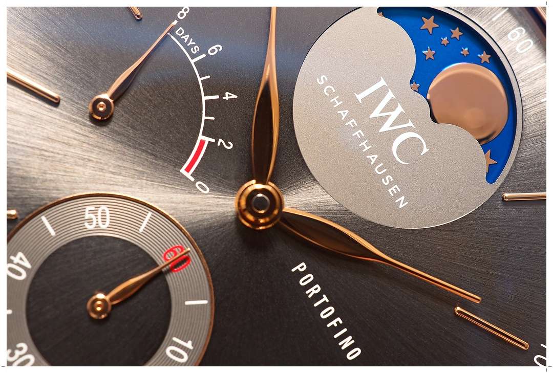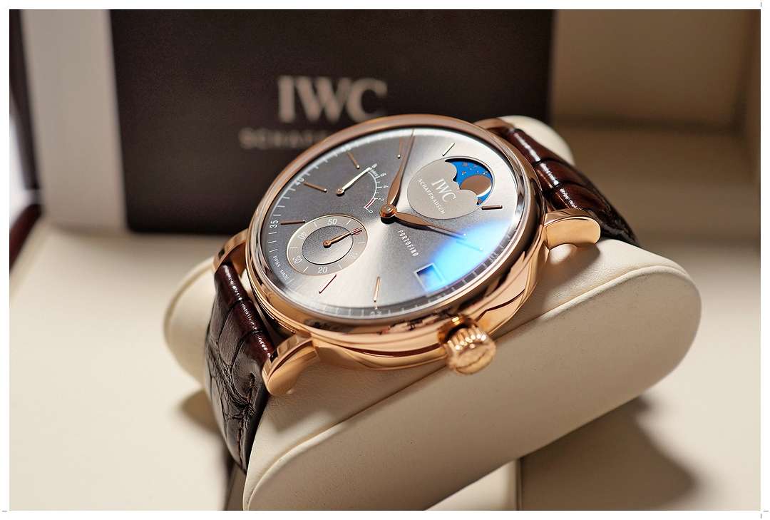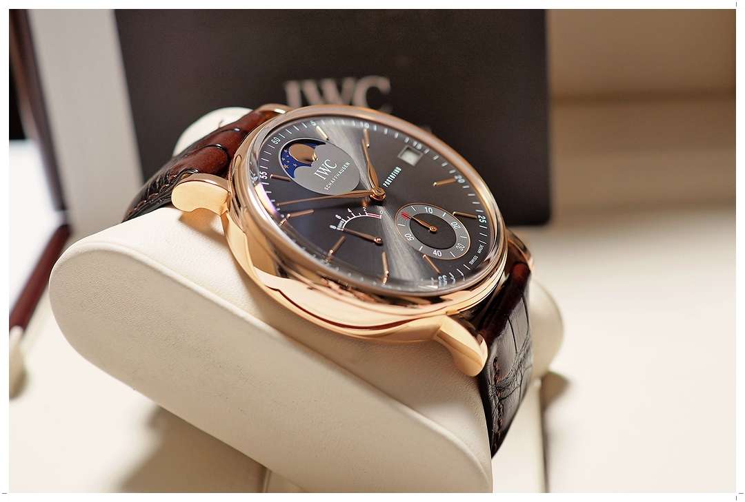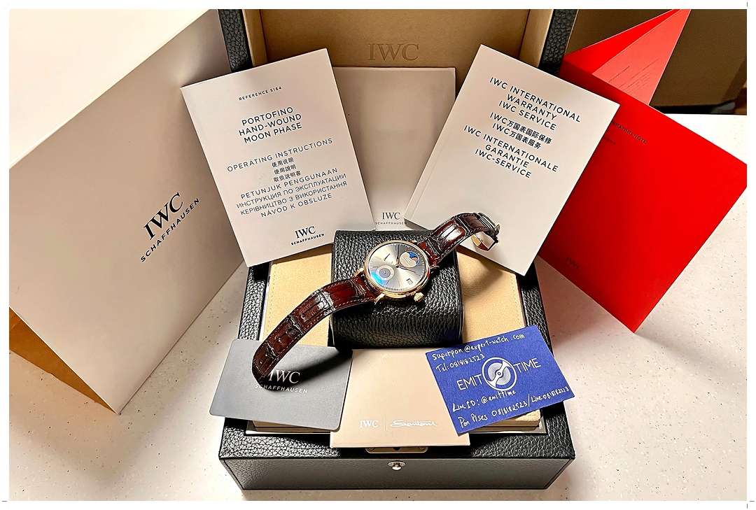 IWC Portofino 8 Days Hand-Wound Moonphase 45mm Red Gold 18k (Pink Gold) IW516403 (Price List 920,000 บาท) หน้าปัด Anthracite Sunburst สวยส่งประกวด ไม่เคยปัดขัด ขนแมวน้อยมากๆ ไร้รอยหนัก กระจกตัดแสงไร้ริ้วรอย หลังเปลือย เครื่องไขลาน IWC In-House Caliber 59800 สาย Alligator IWC Santoni Original สภาพแทบไร้ตำหนิ น้ำหนักรวม 123g น้ำหนักทอง 94g ประกัน 8 ปี ใบไทย Oct-2022 Full-Set -338,000 บาท-
