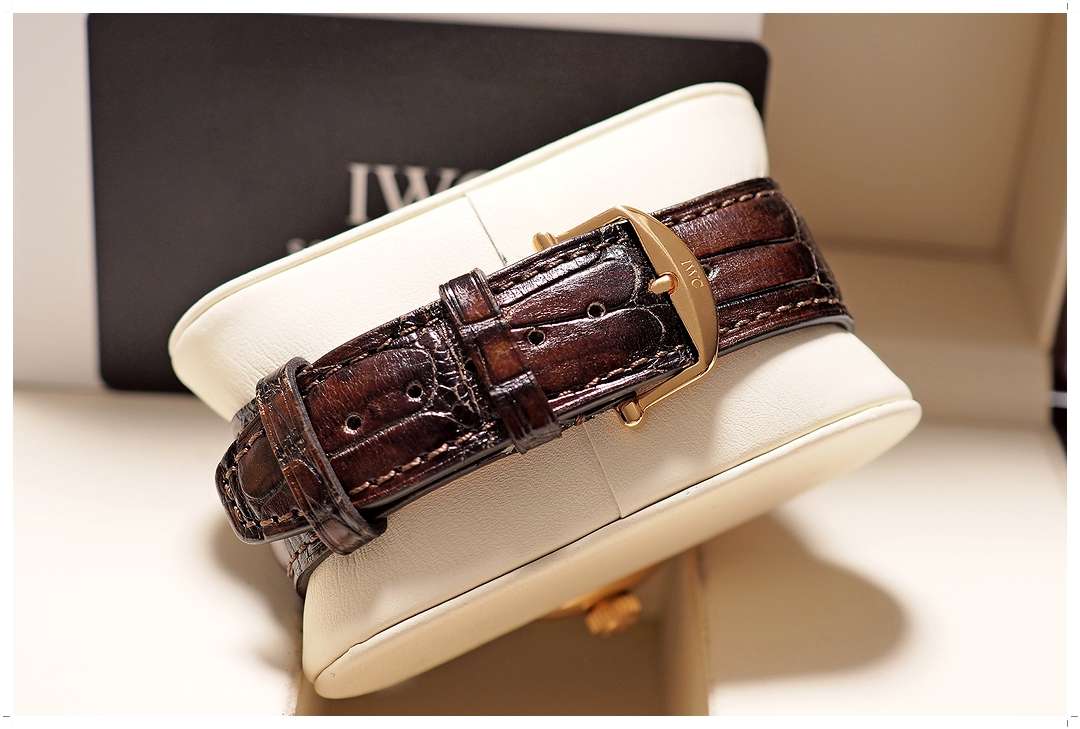 นาฬิกาเจ้าของออก IWC Boutique มือเดียว ใช้งานน้อยมากๆ นอนเซฟเกือบตลอดชีวิต รอยขนแมวน้อยมาก ไร้รอยหนักใดๆทั้งสิ้น ไม่เคยผ่านการขัดแต่ง ตัวเรือนและบัคเคิ่ลทำจากวัสดุ Red Gold (Pink Gold) 18k แน่นๆตันๆ น้ำหนักรวมทั้งเรือน 123g กระจก Sapphire Double Anti-Reflection Coating ตัดแสงสะท้อนหมดจดไร้รอยขีดข่วนทั้งด้านหน้าและด้านหลัง สายหนัง Alligator IWC Santoni Original เดิมๆสภาพยอดเยี่ยมมาก แทบไม่ต่างกับของใหม่ กลไกไขลาน IWC In-House Moonphase Power Reserve 8 Days Caliber 59800 สำรองพลังงาน 8 วันเต็ม ทำงานได้อย่างสมบูรณ์แบบ ประกันทั่วโลกเหลือยาวๆถึง Oct-2030