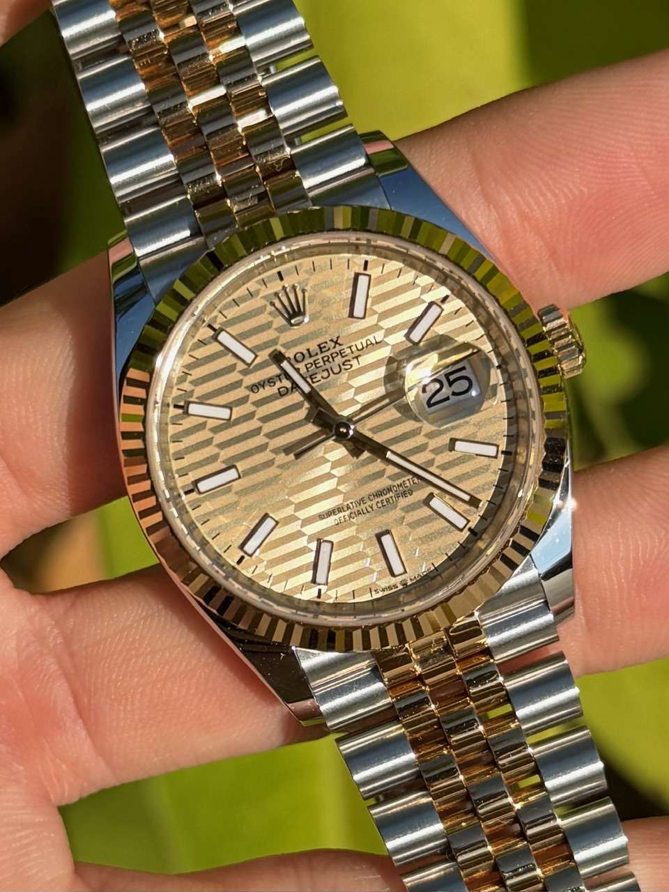 Golden motif dial jubilee bracelet fluted bezel