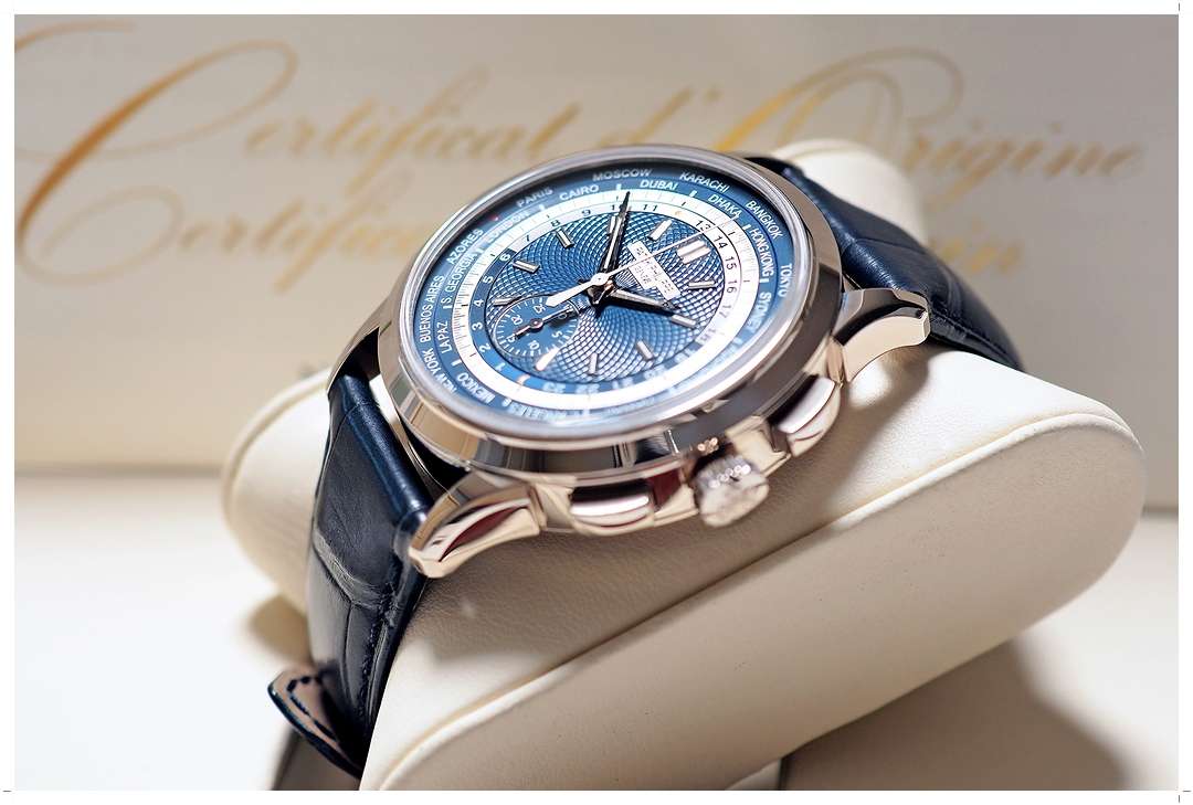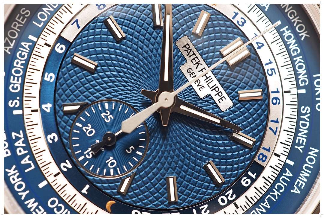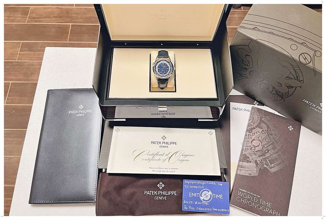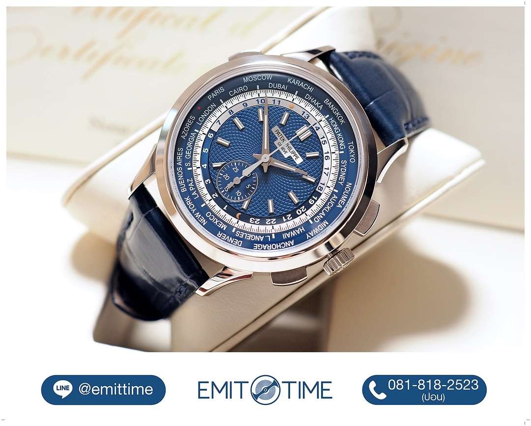 Like New!! **ลดจากป้ายครึ่งราคา** Patek Philippe World Time Chronograph Flyback 5930G-001 Blue Dial 39.5mm ตัวเรือนและบัคเคิ่ลระบบบานพับดอกไม้ White Gold 18k สายหนัง Blue Alligator Patek Original สภาพยอดเยี่ยมมากๆ นาฬิกาเจ้าของมือเดียว สวยนางฟ้า ไร้รอยหนัก กระจกไร้ริ้วรอย สวยเดิมไม่เคยปัดขัดใดๆทั้งสิ้น นอนเซฟเกือบตลอดอายุ (Price List สุดท้ายก่อน Discon สูงถึง 2.89 ล้านบาท) Y-2018 Full-Set -1,450,000 บาท-