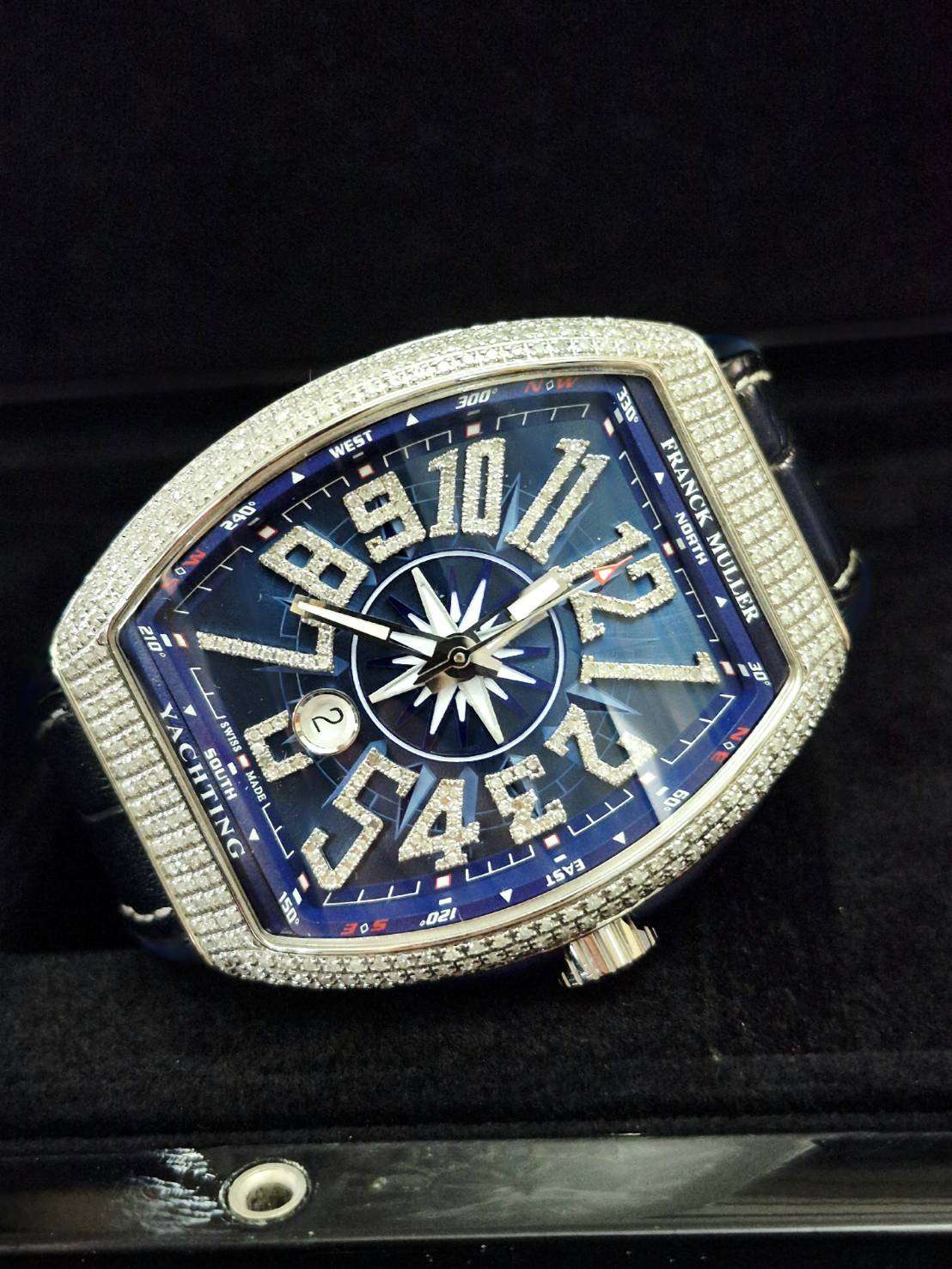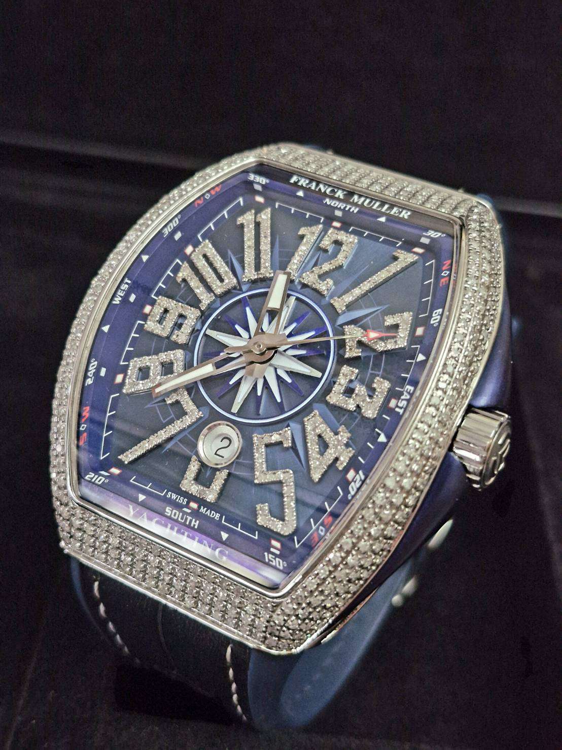 ⌚Franck Muller VanguardV45 Yachting Automatic 45mm Diamonds After setting.ฝังเพชรน้ำงามทั้งเรือนและหน้าปัด กล่อง, ใบฯครบๆ ราคาดีเวอร์