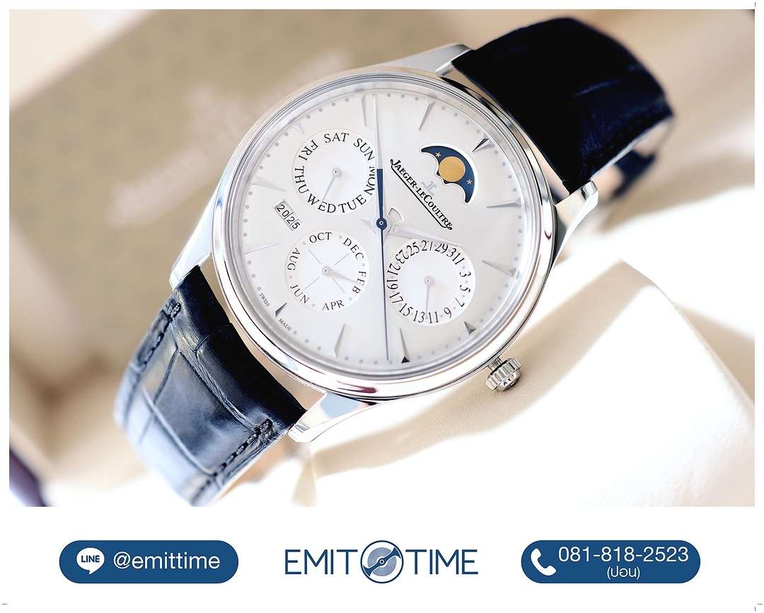 นาฬิกาเจ้าของมือเดียวซื้อป้ายแดงจาก Boutique ใช้งานน้อย ไร้รอยหนัก กระจกสวยใสไร้ริ้วรอยทั้งหน้าหลัง สภาพสวย ไม่เคยผ่านการปัดขัดใดๆทั้งสิ้น สาย Alligator JLC Original สภาพดี ใช้งานได้อีกนาน เครื่องในตำนาน JLC In-House Perpetual Calendar Caliber 868/1 ระบบ Automatic ทำงานได้อย่างสมบูรณ์แบบ ประกัน Worldwide 8 ปีเหลือยาวๆถึง Y-2027
