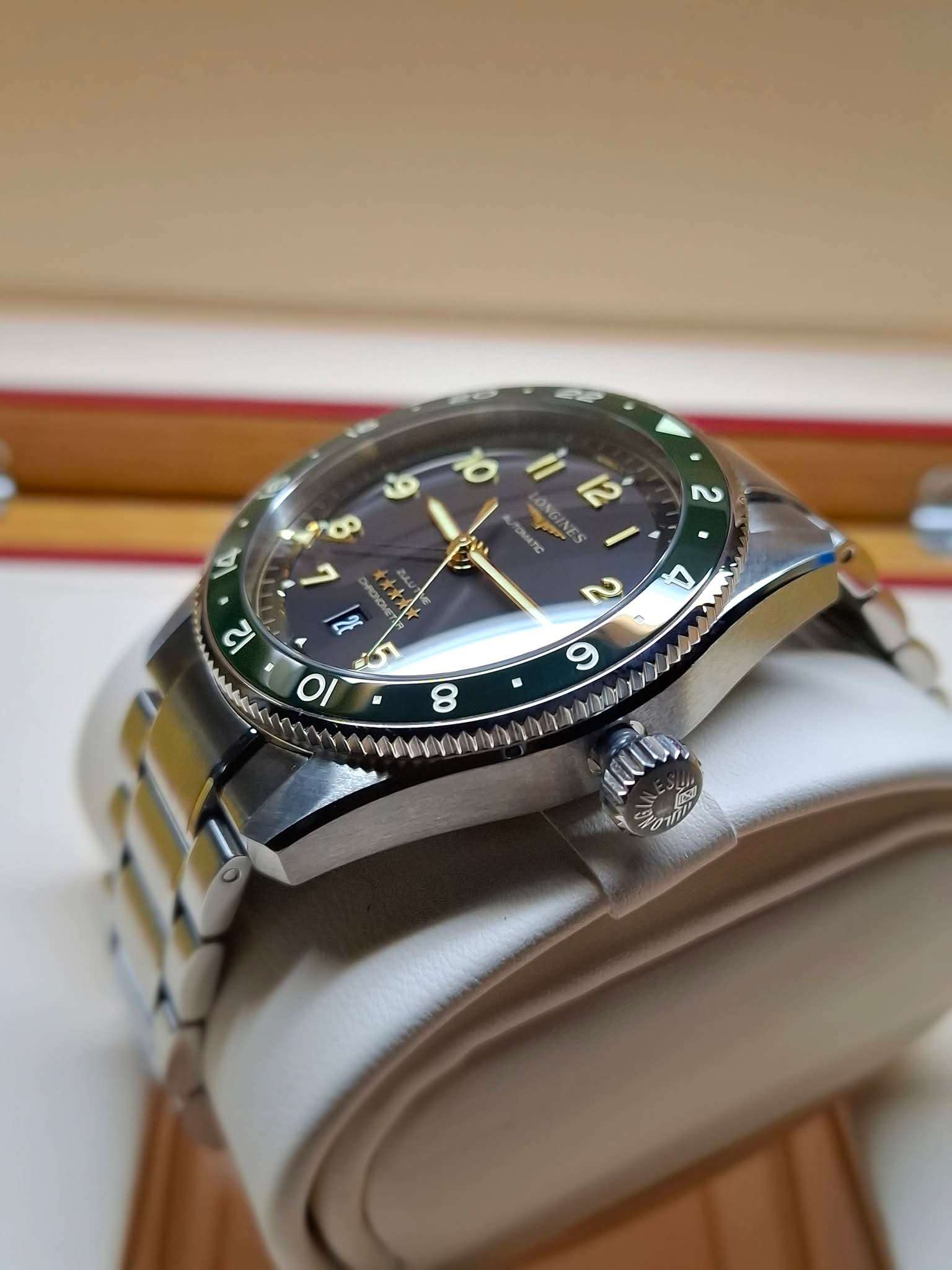 ขนาด 42 มิลใส่เข้าข้อหล่อๆ, หน้าปัดสีแอนทราไซต์ ขอบบาเซลเซรามิคสีเขียว, ใส่ง่ายได้ทุกโอกาส, ระบบ Automatic Cal. L844.4 มาตรฐานความเที่ยงตรง Chronometer สำรองพลังงานได้ถึง 72 ชั่วโมง, มีฟังก์ชั่น GMT บอกเวลาประเทศที่ 2, กระจกซัฟไฟร์กันรอย, มีช่องแสดงวันที่