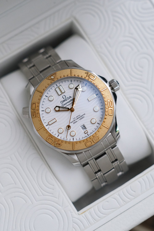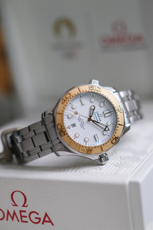 ✨ ความพิเศษอยู่ที่ “Paris 2024” Olympic Edition ที่เล่นโทนขาว-ทอง ให้กลิ่นอายเหรียญรางวัล พร้อม caseback สลักโลโก้โอลิมปิก และดีไซน์ bezel gold ที่แตกต่างจาก Seamaster ปกติอย่างชัดเจน ไม่ใช่แค่ Diver แต่เป็นเรือนที่สะท้อน legacy ของ Olympic Games และสถานะ Official Timekeeper ของ Omega ที่ยาวนานระดับตำนานครับ
