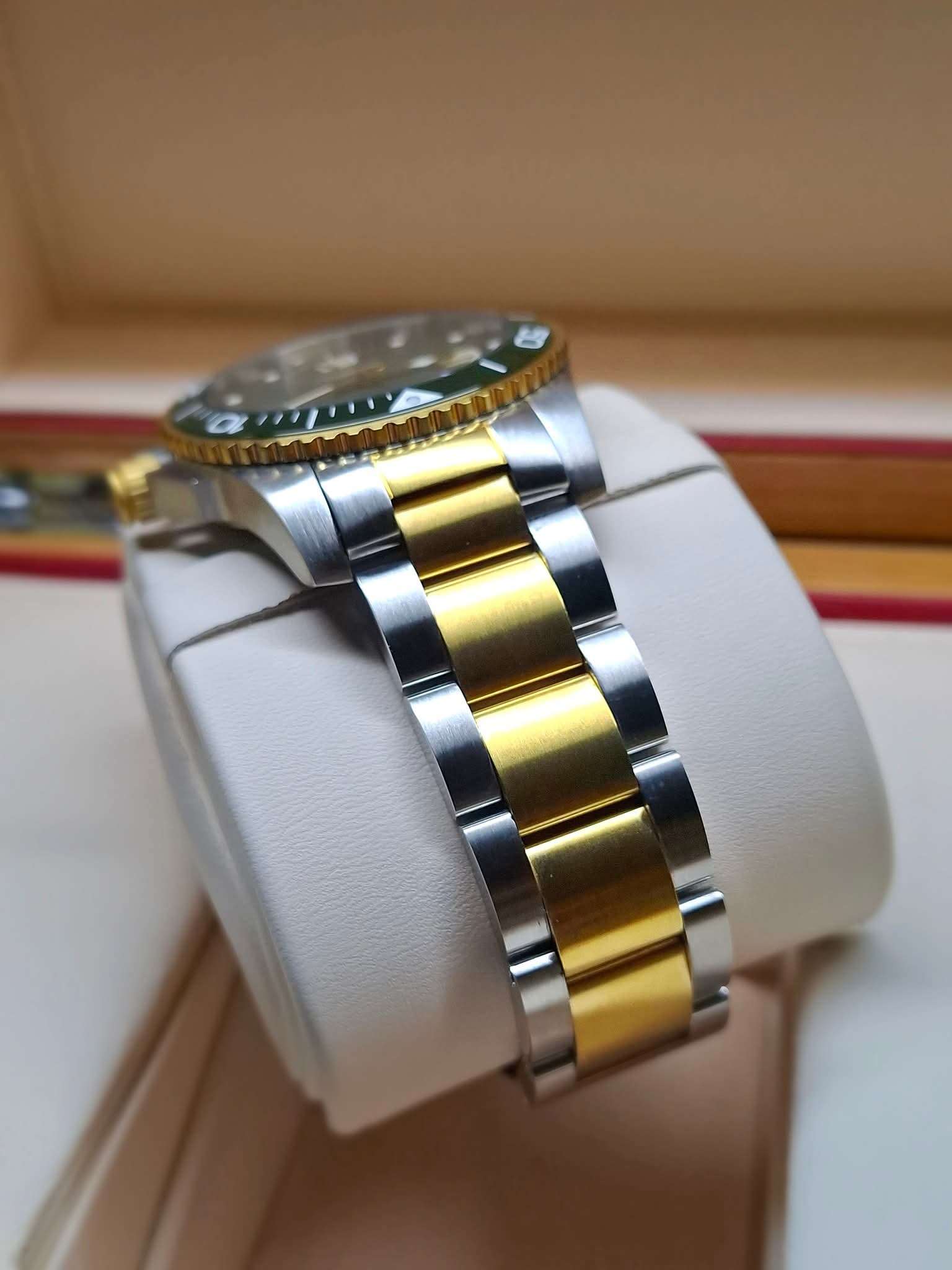 ขนาด 41 มิลใส่เข้าข้อหล่อๆ, หน้าปัดสีเขียว, Bezel สีเขียวป็นเซรามิคหมุนได้, ขอบบาเซล/เข็มบอกเวลา/เม็ดมะยมเป็นสี Yellow Gold, ระบบ Automatic Cal.L888 สำรองพลังงานได้ถึง 72 ชั่วโมง, ดำน้ำลึก 300 เมตร, เม็ดมะยมขันเกลียว, กระจกซัฟไฟร์กันรอย, มีช่องแสดงวันที่
