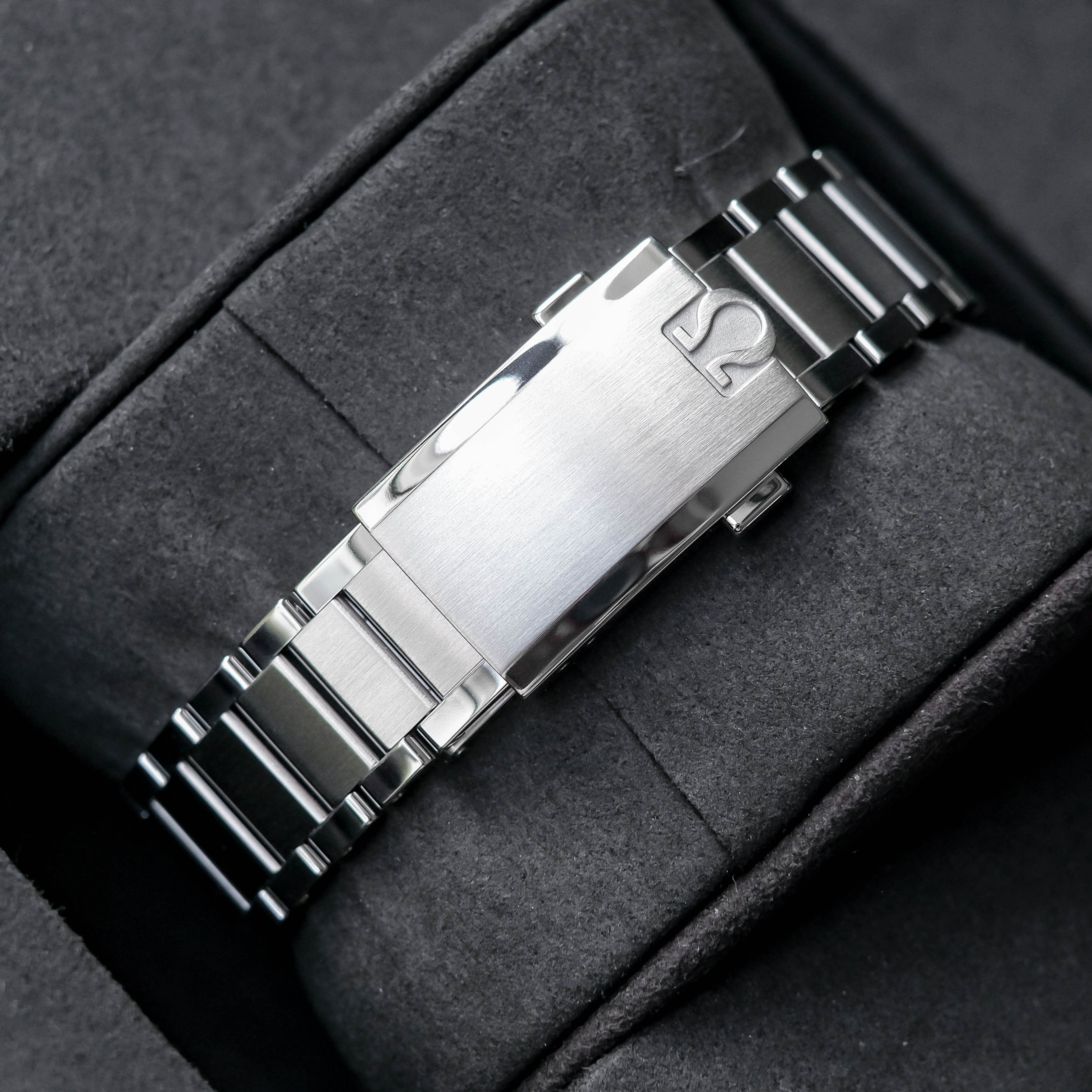 พอดีข้อไม่ล้น โลโก้โลหะนูน พรายน้ำไข่ไก่ ตัดกับหน้าปัดสีดำ กระจกSapphire หลังเปลือยเห็นเครื่อง 321 แบบเต็มๆกับลายขัด