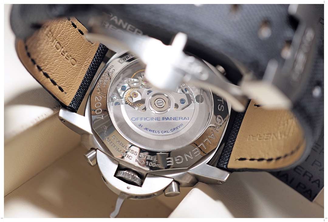 Luminor โมเดลนี้หา Condition NOS และ Full-Set แบบเรือนนี้ได้ยากมากถึงมากที่สุดในท้องตลาดครับ ผลิตมาเพื่อการ Celebrate Panerai Classic Yachts Challenge เมื่อปี 2007 เพียง 500 เรือนทั่วโลก รอยขนแมวจากการจัดเก็บแทบจะไม่มีให้เห็น ไม่เคยผ่านการใช้งาน ไร้รอยหนัก ไม่เคยปัดขัด สาย Panerai Original ไม่ต่างกับของใหม่ ไม่มีร่องรอยคราบการใช้งานใดๆทั้งสิ้น เจ้าของมือเดียว นอนเซฟตลอดชีวิต เรียกได้ว่าสวยไร้ที่ติ กระจก Double Anti-Reflection Coating ทรงโดมสวยใสไร้ริ้วรอย หลังเปลือยโชว์กลไก Panerai Automatic Chronograph Caliber OP XVIII ระบบจับเวลา 2 จังหวะ ทำงานได้อย่างสมบูรณ์แบบ Reset ตรงทั้งสองเข็ม