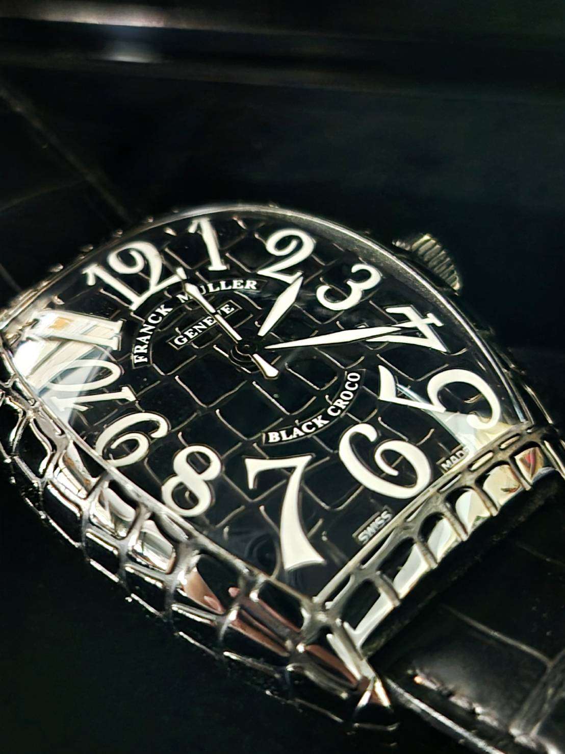 ⌚Franck Muller Black Iron Croco Tonneau Curvex ref.8880 Automatic ขนาด 39×55mm ตัวเรือนและหน้าปัดลายจระเข้ โดดเด่นเป็นเอกลักษณ์สวยงามของใหม่3แสนกว่า เรือนนี้สภาพเยี่ยม กล่อง, ใบครบๆ
