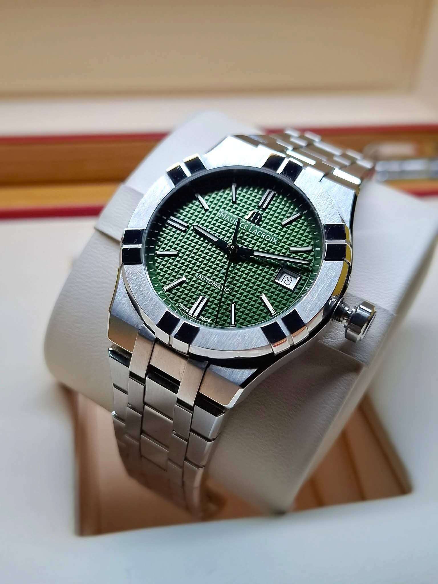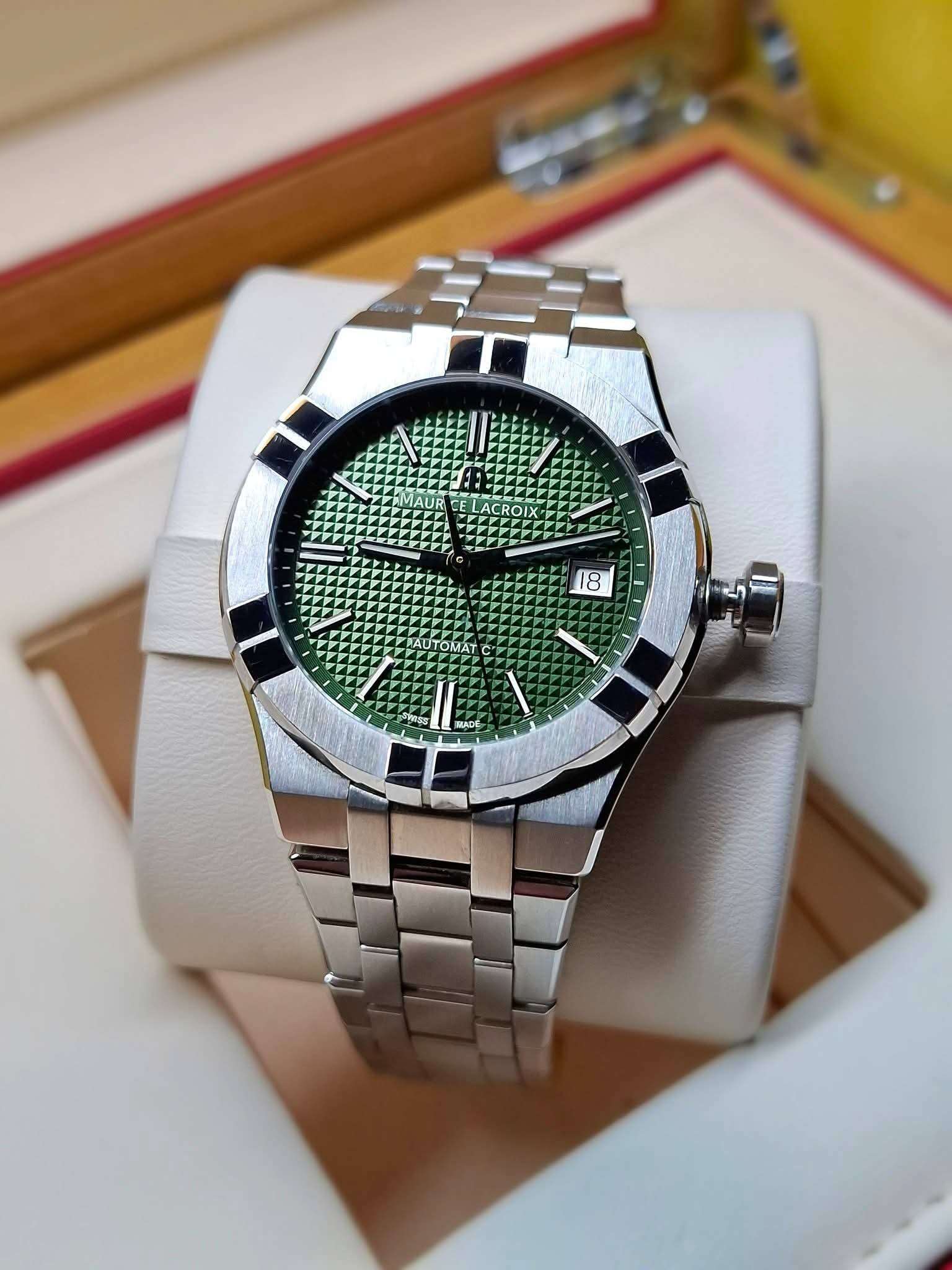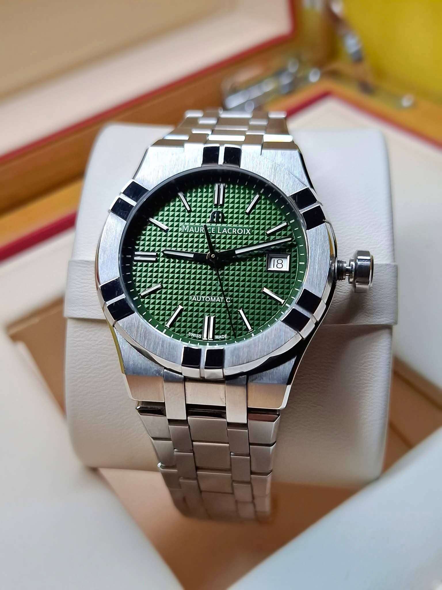 MAURICE LACROIX AIKON 39MM GREEN AUTOMATIC DATE FULL SET