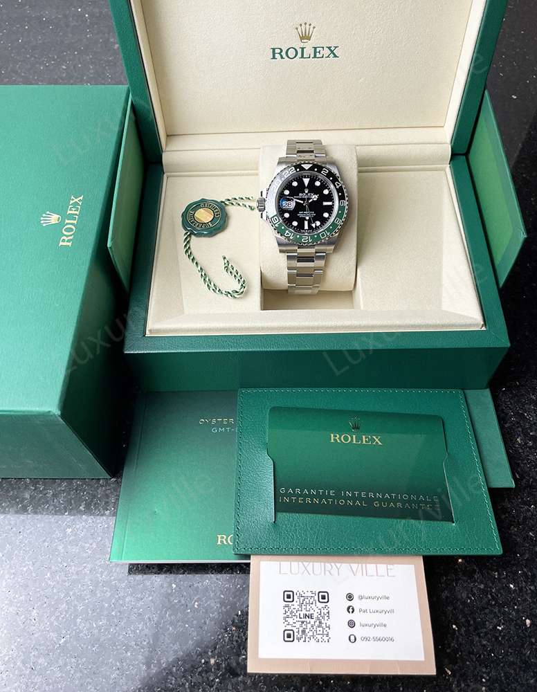 - หน้าปัดสีดำ ขอบ Cerachrom สีดำ-สีเขียว สาย Oyster steel