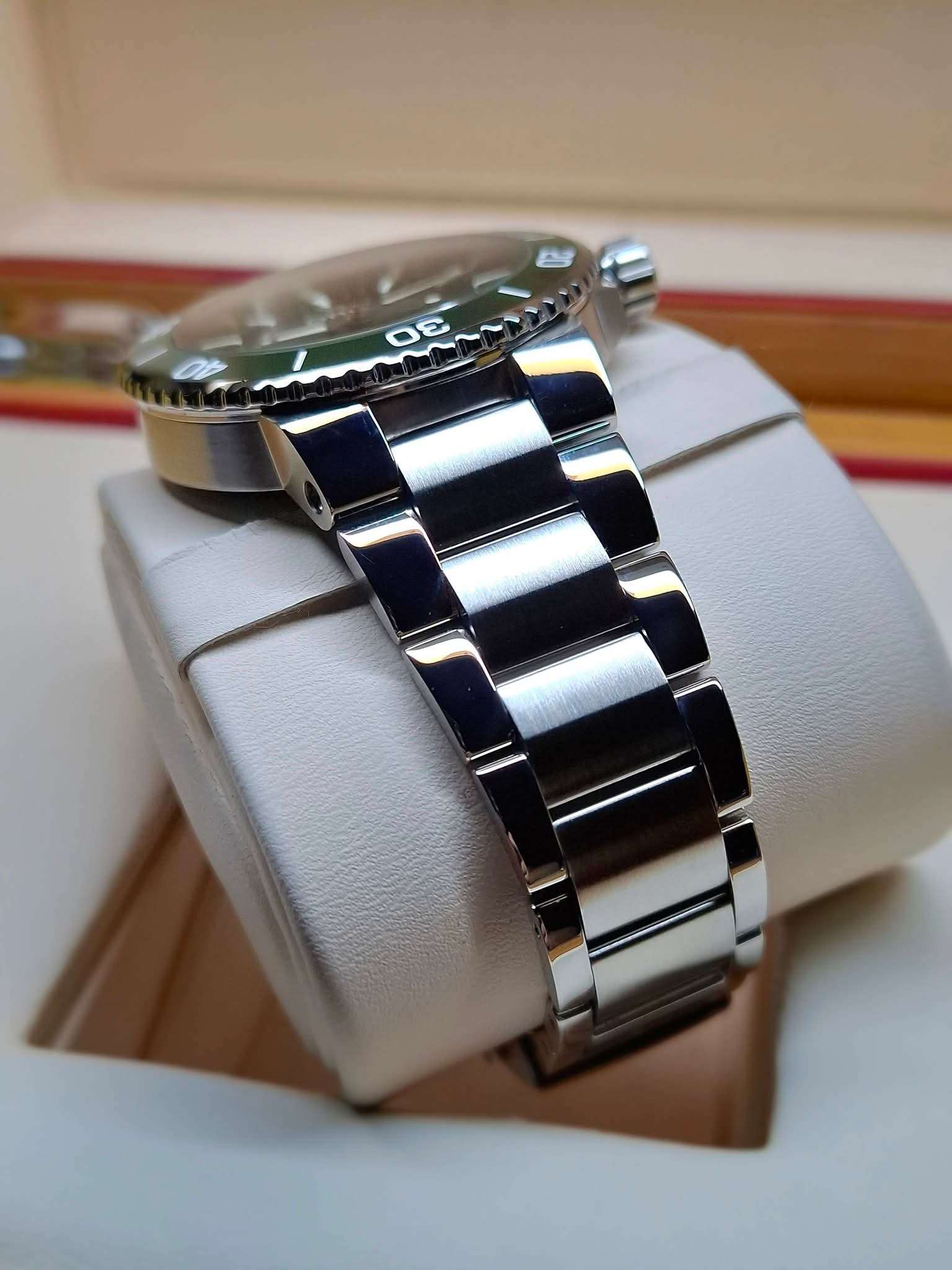 ขนาด​ 43.5 มิลใส่เข้าข้อหล่อๆ, หน้าปัดสีเขียวเล่นแสงสวยงาม​, ระบบ Automatic, ดำน้ำลึก 300 เมตร, เม็ดมะย​มขันเกลียว, ขึ้​นลานและแฮ็​คเข็มวิได้, กระจกซัฟ​ไฟร์กันรอย, ขอบ​บา​เซลเซรามิคกันรอยหมุนได้, มีช่อง​แสดงวันที่, หลังเปล​ือยโชว์เคร​ื่องสวยงาม​