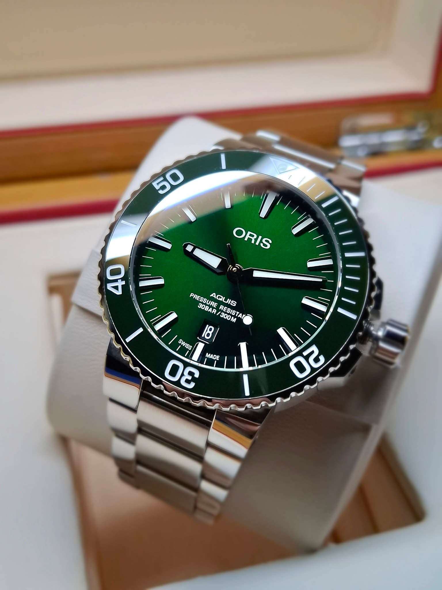 #ORIS​ #AQUIS​ #DATE #300M. #GREEN #DIAL​ #43.5MM.​ #FULL #SET