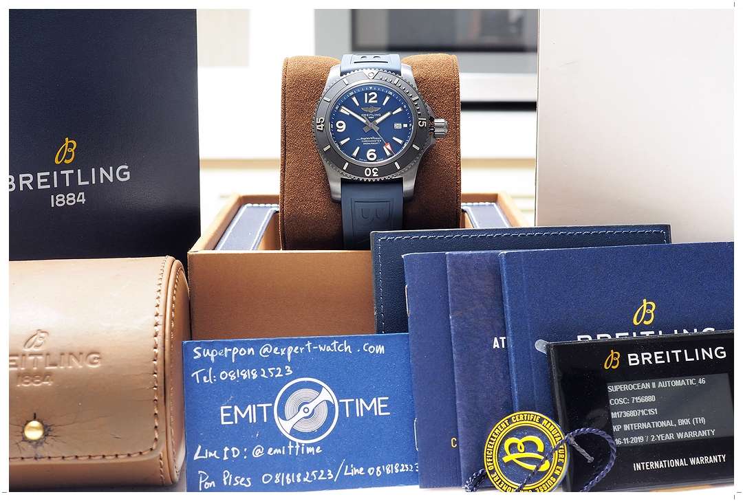 99% Brand New!! **ลดจาก Price List เกือบ 60%** Breitling Superocean 46mm DLC Blue Dial ref.M17368D71C1S1 กลไก Automatic Breitling Caliber 17 เจ้าของแค่ลองทาบข้อในช็อป ไม่เคยผ่านการใช้งาน ไร้ตำหนิ!! ใบไทย Nov-2019 Full-Set -88,000 บาท- (ราคา Price List สุดท้ายสูงถึง 208,000 บาท)