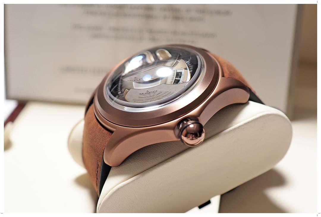 Corum Bubble 47mm โมเดลนี้ผลิตเพียง 350 เรือนทั่วโลก และถือเป็นหนึ่งในโมเดลที่ขึ้นข้อแล้วหล่อที่สุดใน Bubble Collection ครับ ตัวเรือนทำจาก Stainless Steel PVD Bronze Coating สวยหยุดหายใจ หน้าปัดฉลุลาย Guilloche สี Chocolate Brown พร้อมหน้าต่างวันที่ที่ตำแหน่ง 6 นาฬิกา เข้ากับตัวเรือนอย่างลงตัว สายหนังวัวสีน้ำตาล หลักพรายน้ำสีน้ำตาลทอง Heritage เข้ากับหน้าปัดอย่างโดดเด่น สวยอย่างเป็นเอกลักษณ์ แต่งตัวเข้าได้กับทุกรูปแบบ ฝาหลังผ่าเปลือยเป็นวงกลมโชว์กลไก พร้อมระบุเลข Limited Number (090/350) แฟน Corum Bubble ไม่ควรพลาดด้วยประการทั้งปวงครับ