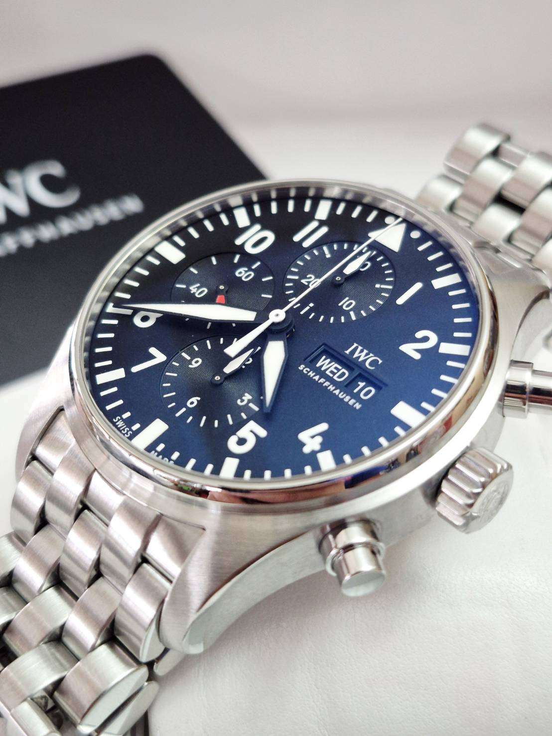⌚IWC IW3777-10 Pilot Spiltfire Automatic Chronograph Day/Date เรือนสตีลขนาด 43mm สายเหล็กหายากมาก สภาพสวยงาม สมบูรณ์ กล่องฯ, การ์ดประกัน(2019)